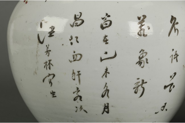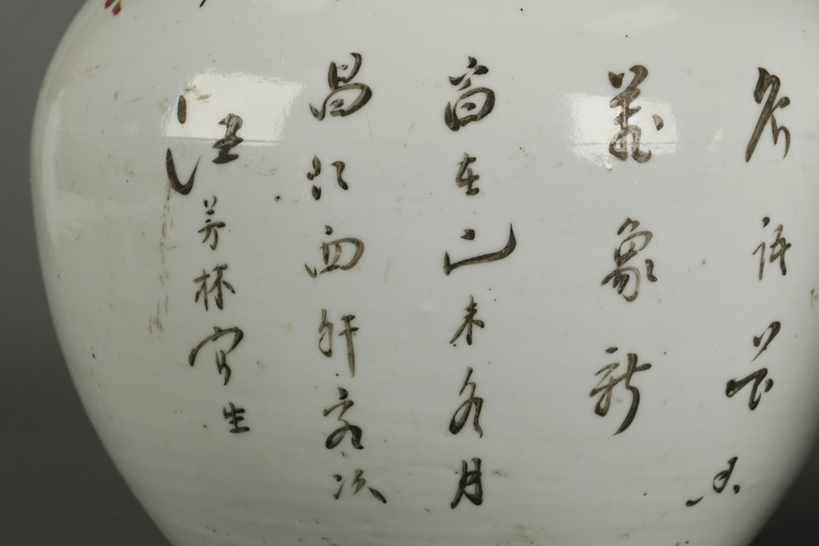 The rounded sides rising from a splayed foot to a slightly everted rim. Both painted with a profusion of flowers and a lone bird. Artist seal on the bottom and calligraphy on the back.