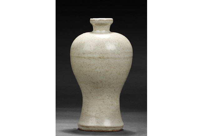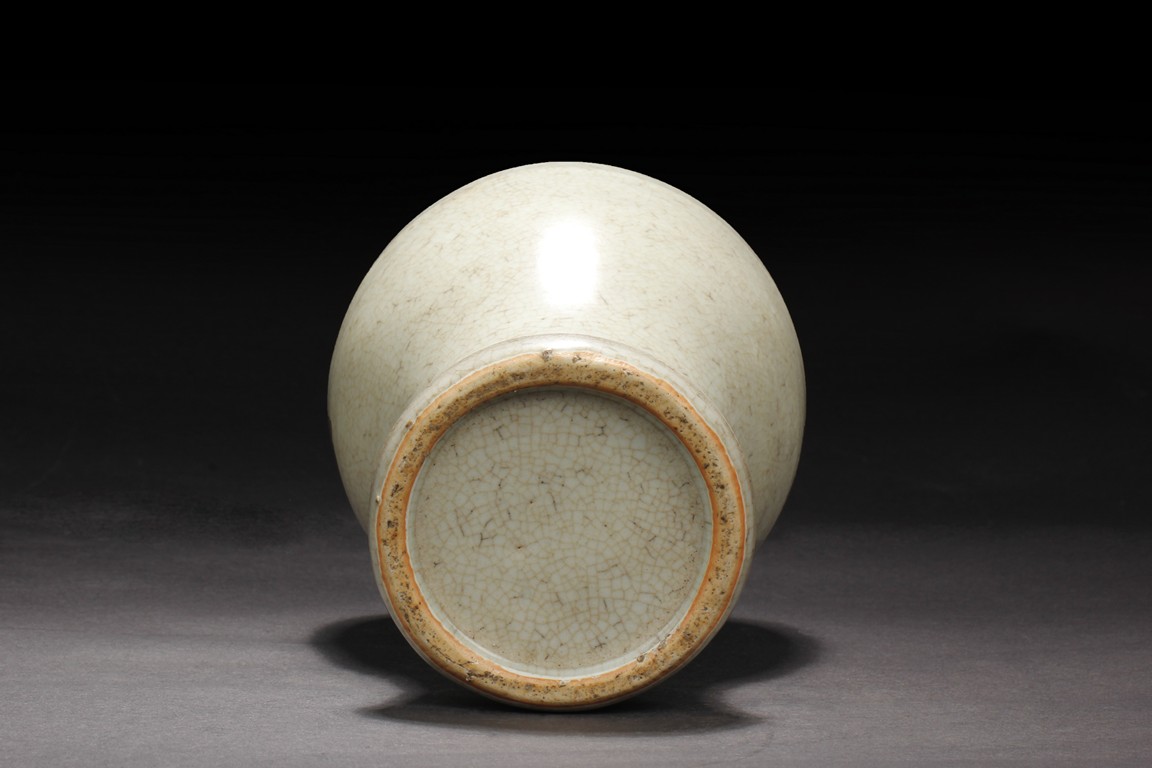 The body tapering from high rounded shoulder to the gently spreading foot, covered on the exterior with crackle patterns over white glaze, the bottom foot ring unglazed. Ming Dynasty period.