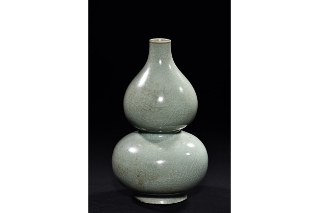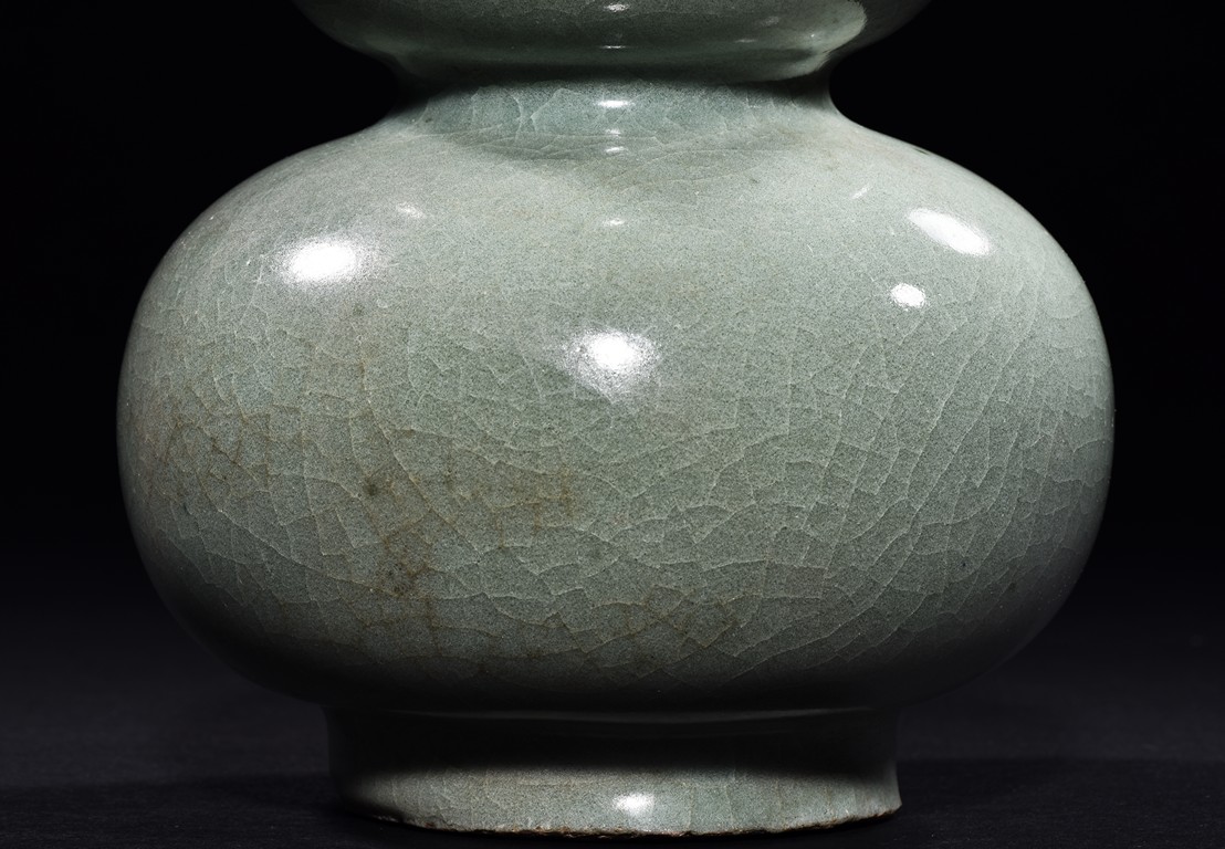 A LONGQUAN CELADON GLAZED DOUBLE GOURD VASE    龍泉青釉葫蘆瓶