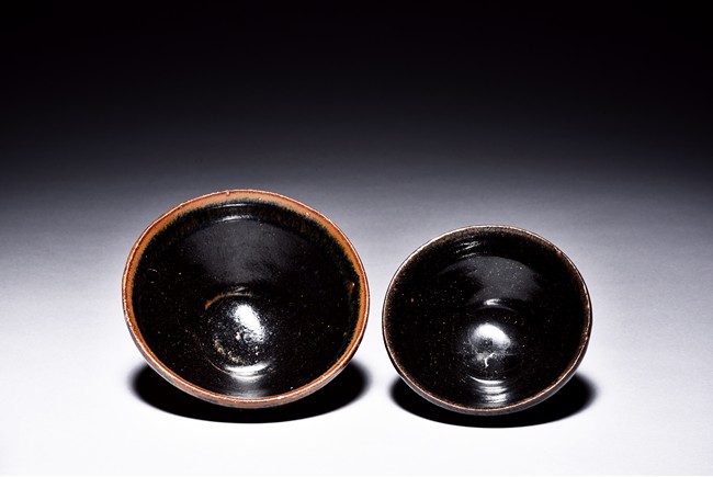 Including a bowl with rounded sides covered overall with thick black glaze, another covered with black glaze with russet markings along the mouth rim. Both bottom unglazed revealing the buff body. Song Dynasty period.
