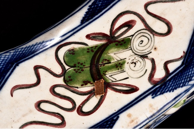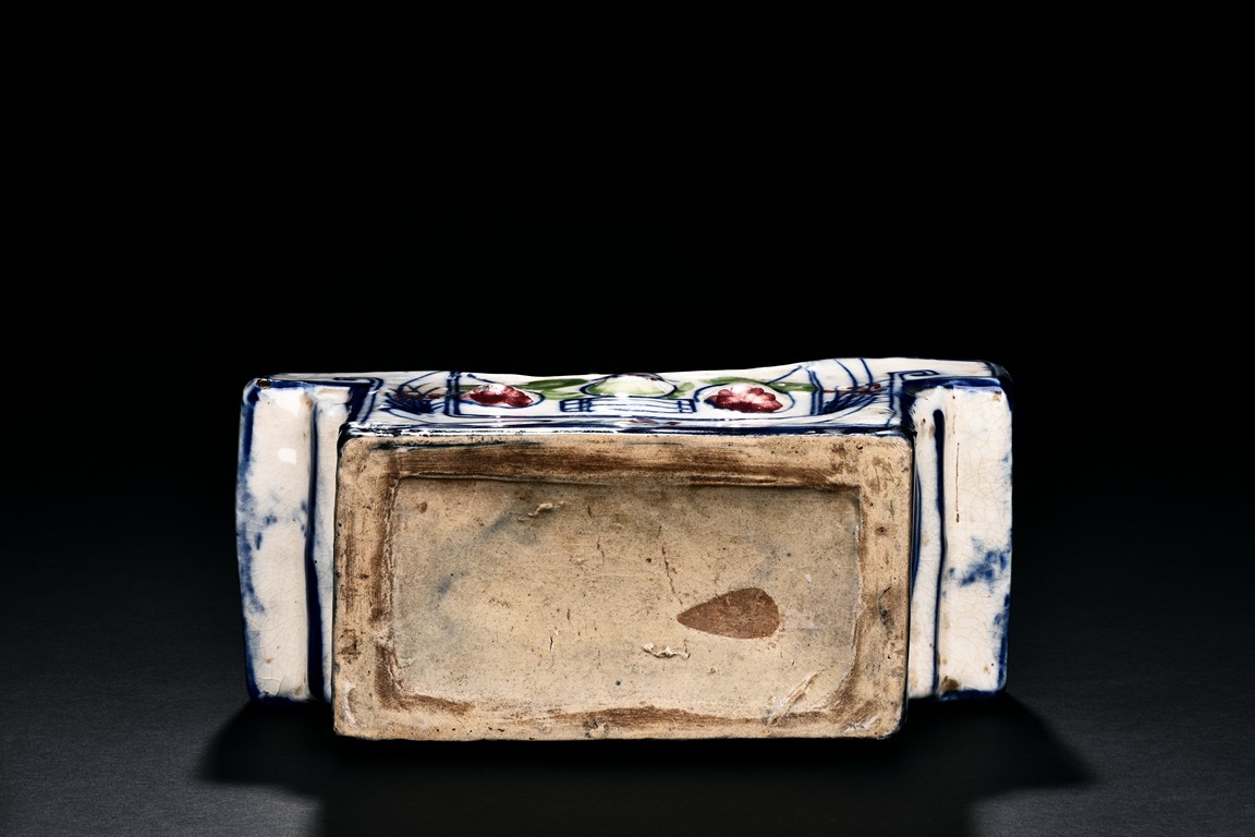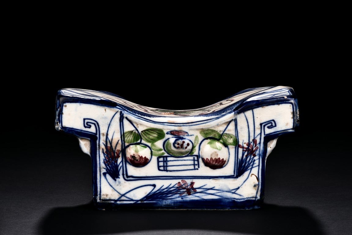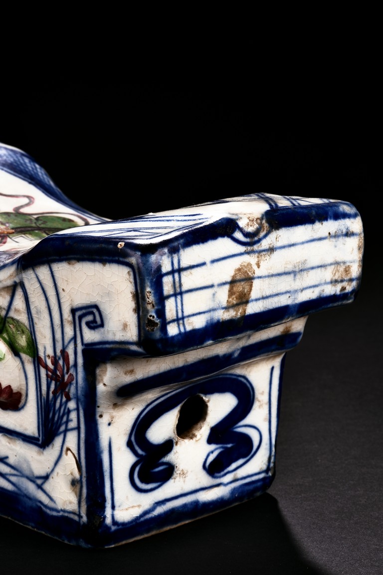 A BLUE AND WHITE POLYCHROME PORCELAIN PILLOW    清 青花瓷枕