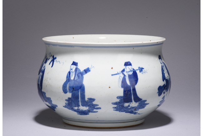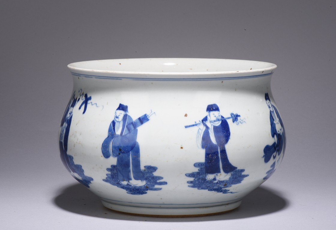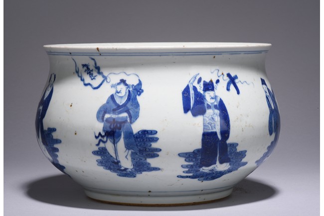 A BLUE AND WHITE 'EIGHT IMMORTALS' CENSER 清 青花八仙人物香爐