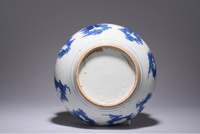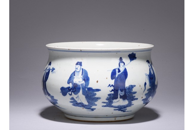 The exterior finely painted in cobalt-blue with eight immortals. Qing Dynasty period.