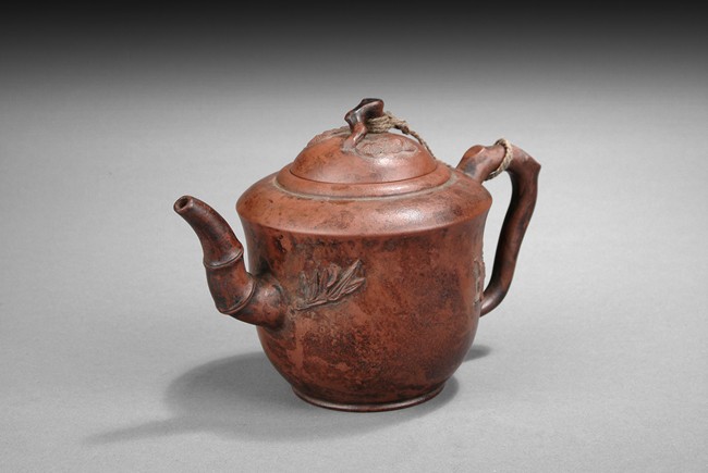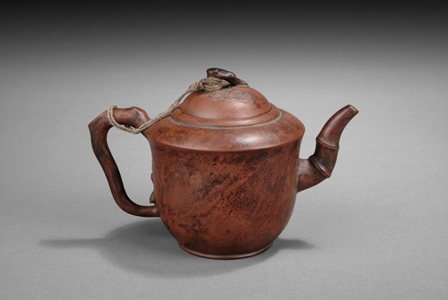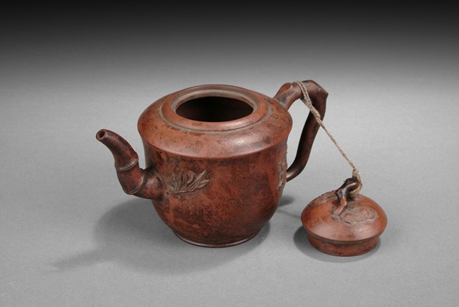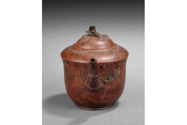 Finely potted and well hollowed, the teapot's body depicts plum tree and orchid, the pouring mouth, handle, and finial depict bamboo, and the cover depicts chrysanthemum, symbolizing Four Gentlemen, or four seasons. Bottom bears four character artist mark 'ZHOU FAXIANG'.
