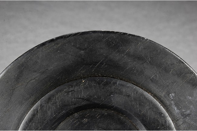 The water-pot is modelled with domed rim of circular opening, it raising from a circular foot ring, the exterior is of natural zitan wood black tone and grains throughout.