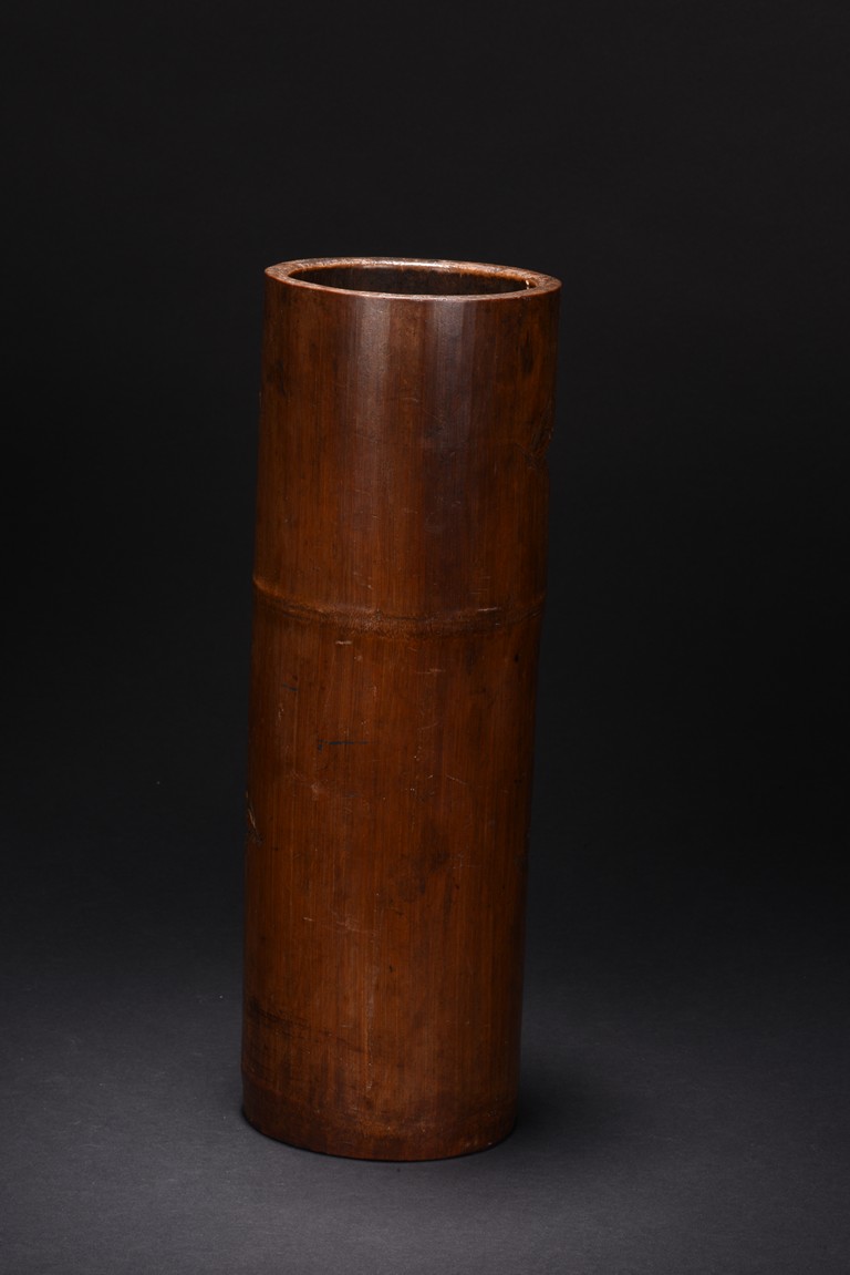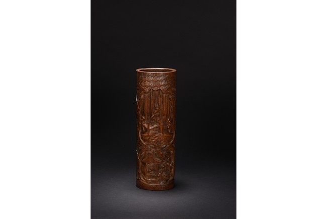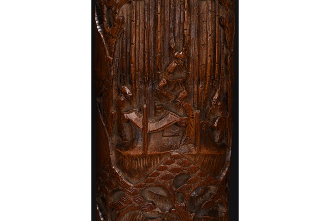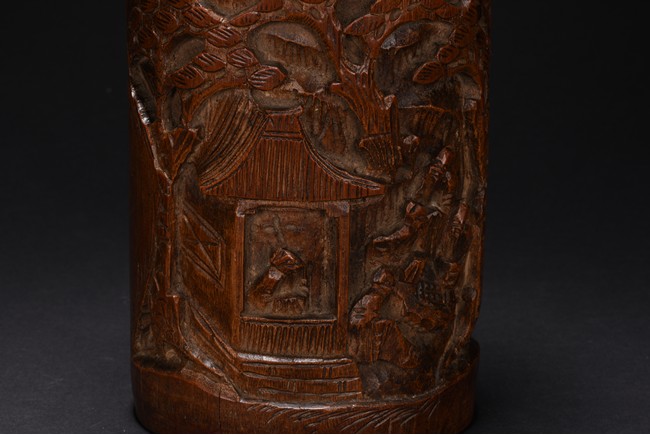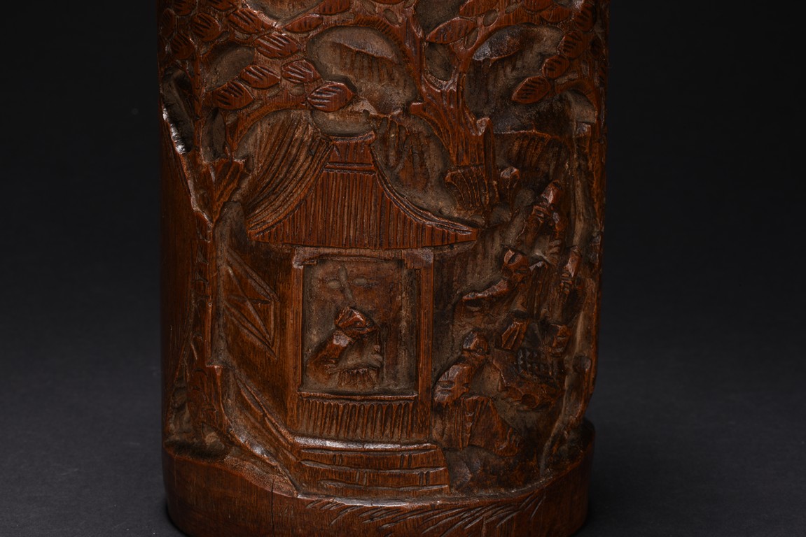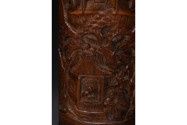 A BAMBOO CARVED BRUSH POT 竹雕人物風景筆筒