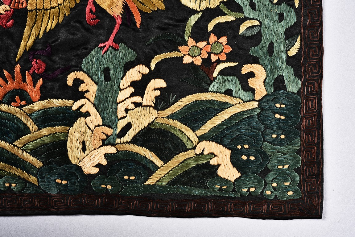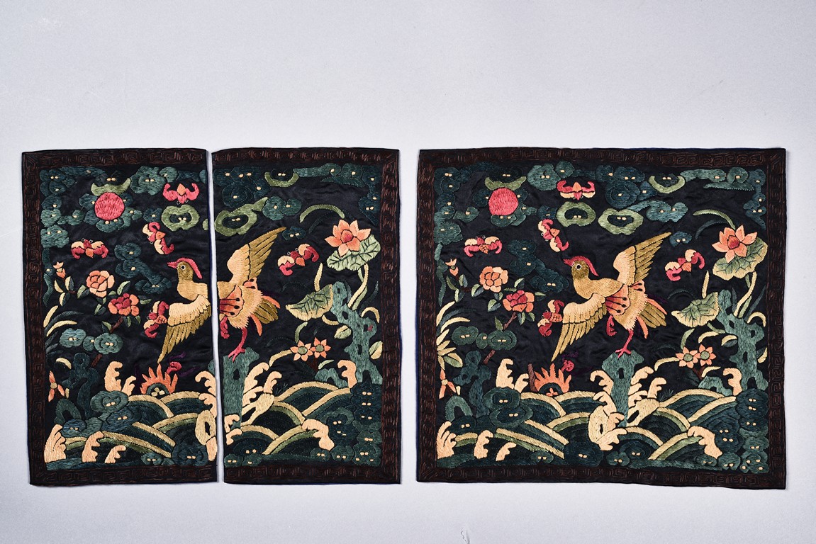 A PAIR OF EMBROIDERED SILK CIVIL OFFICIAL RANK BADGE 清 刺繡文官補子兩張