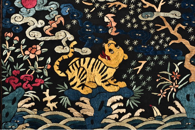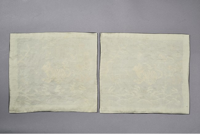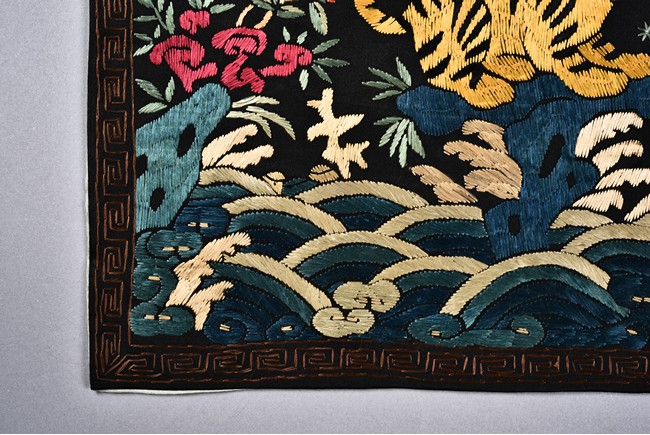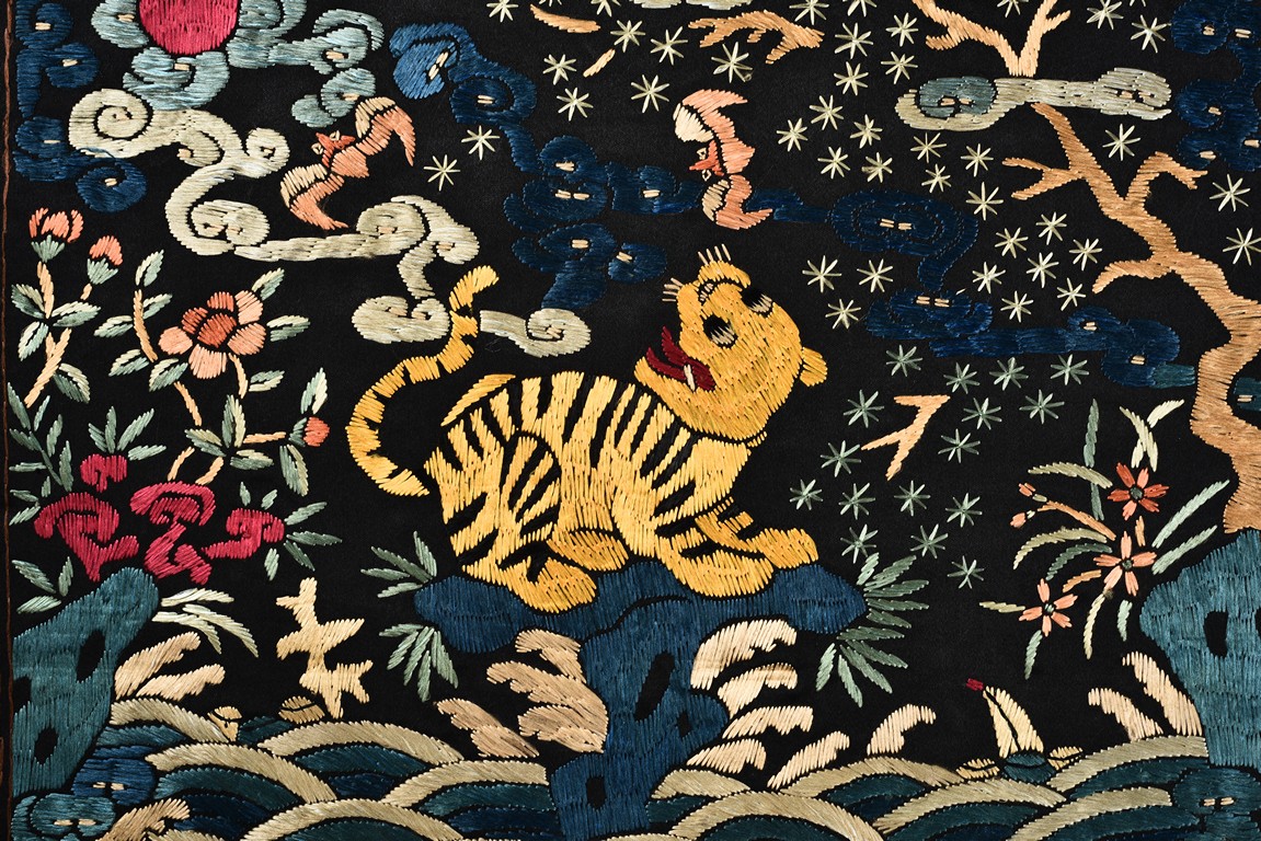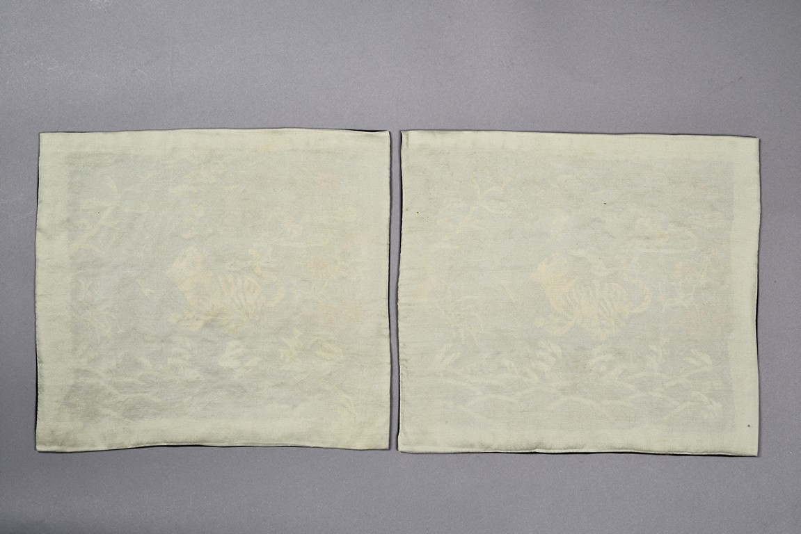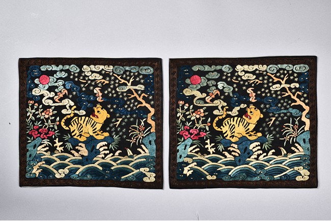 PAIR OF EMBROIDERED SILK MILITARY OFFICIAL RANK BADGE 清 刺繡武官補子兩張