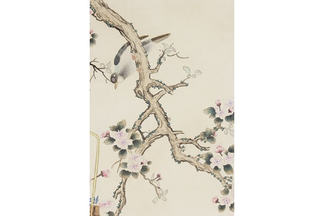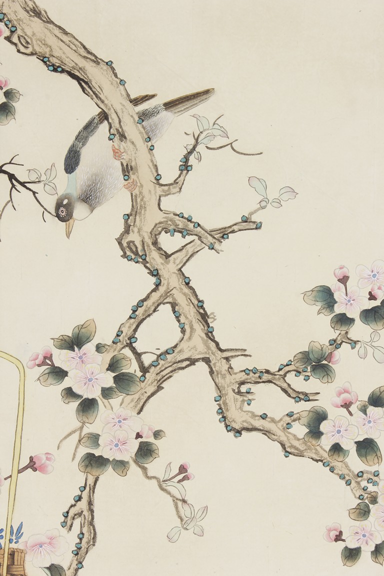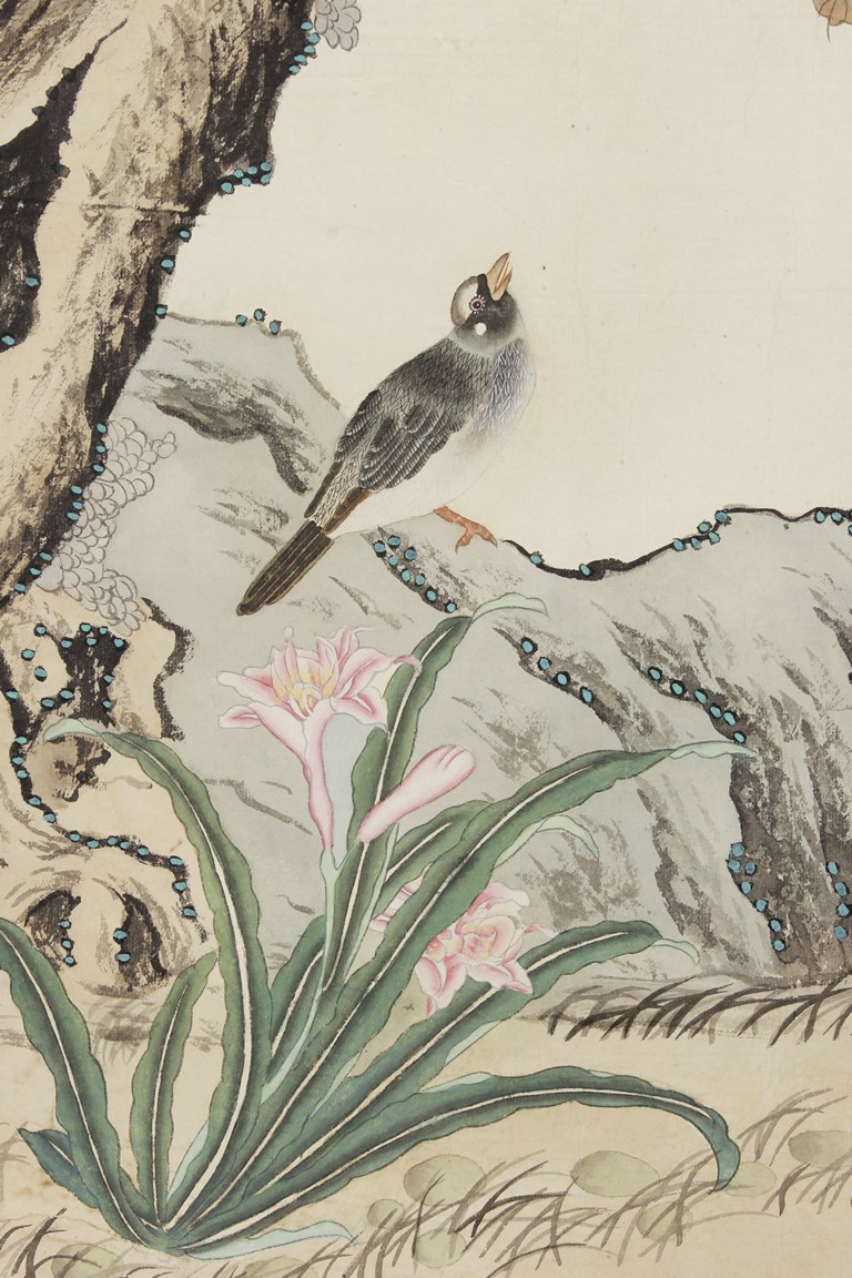 A COLOR AND INK ON PAPER PAINTING 'FLOWERS AND BIRDS'    陳之佛款 花鳥圖 有接裱