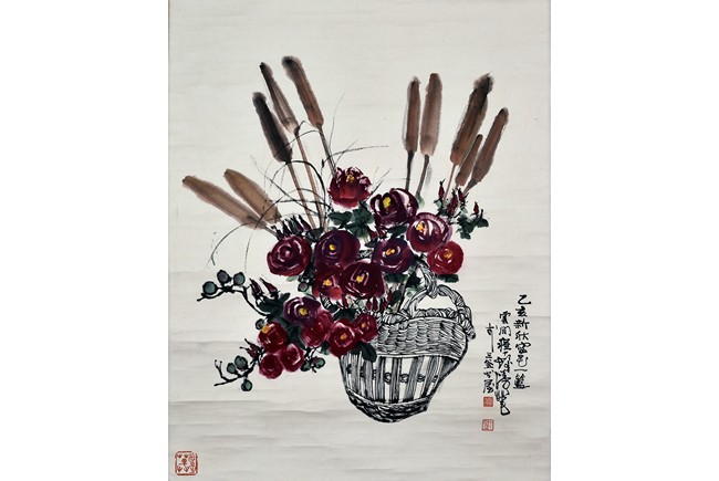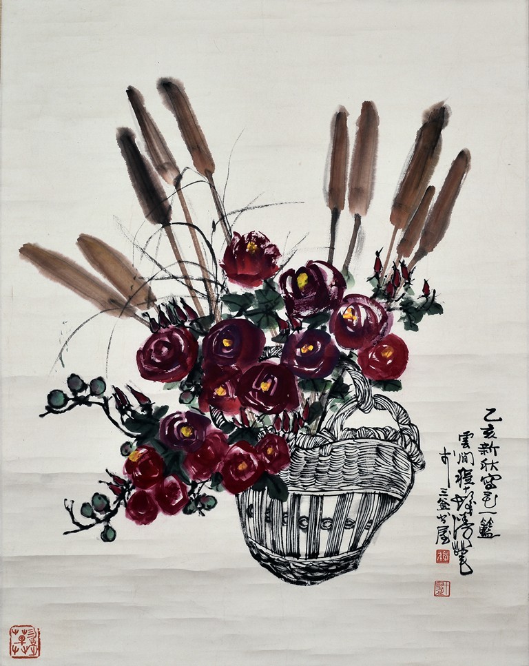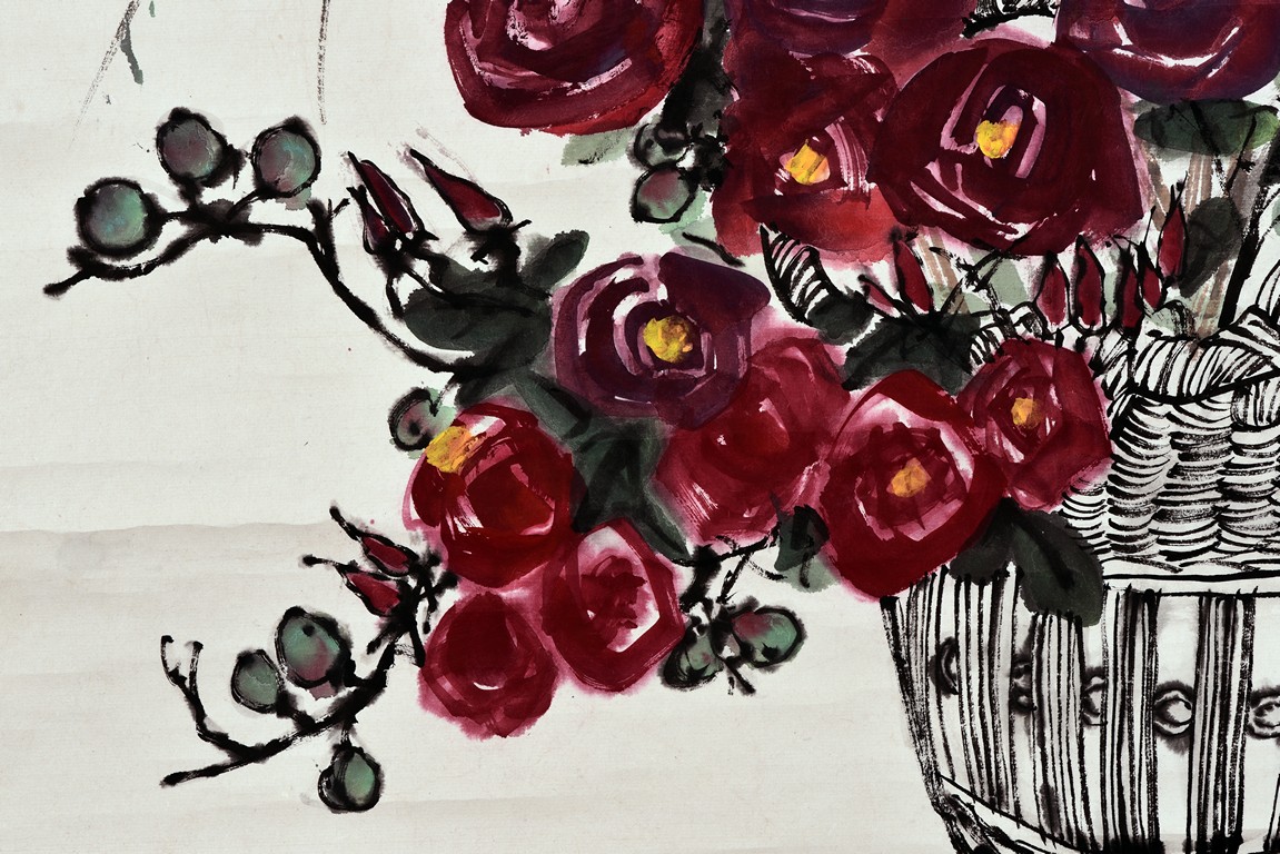 A COLOR AND INK ON PAPER PAINTING 鮮花圖