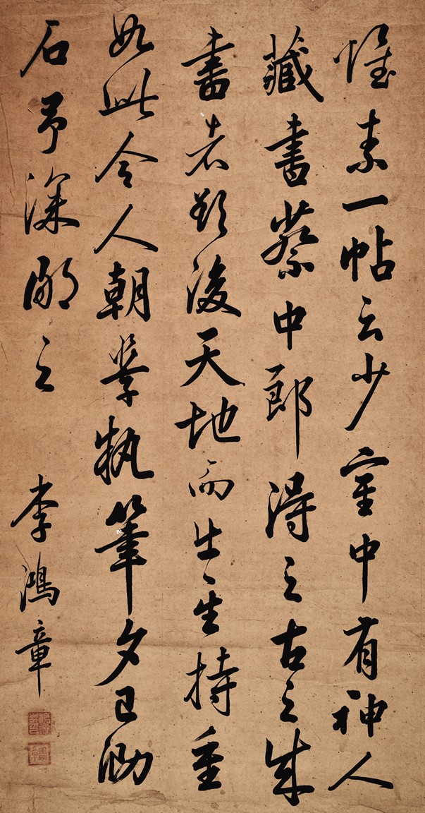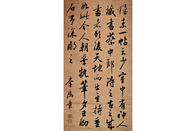 Hanging scroll. Ink on paper. Running script. Signed and with two seal marks. Attributed to Li Hongzhang.