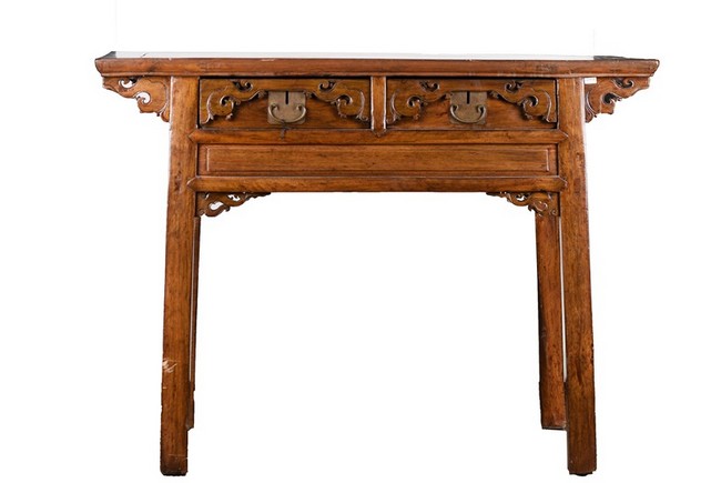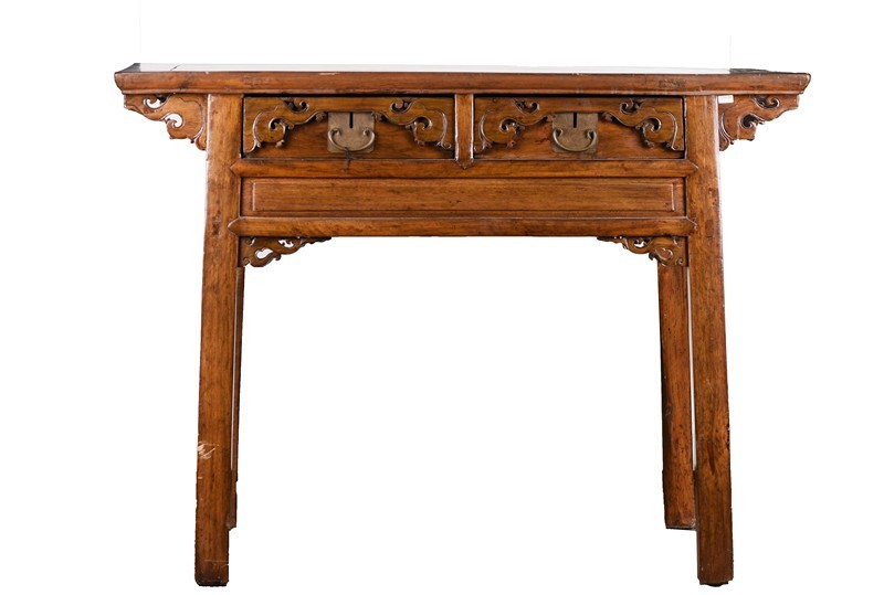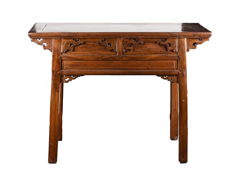 AN ELM WOOD CARVED ALTAR TABLE 晚清民國 榆木二聯悶櫥櫃