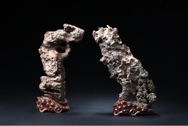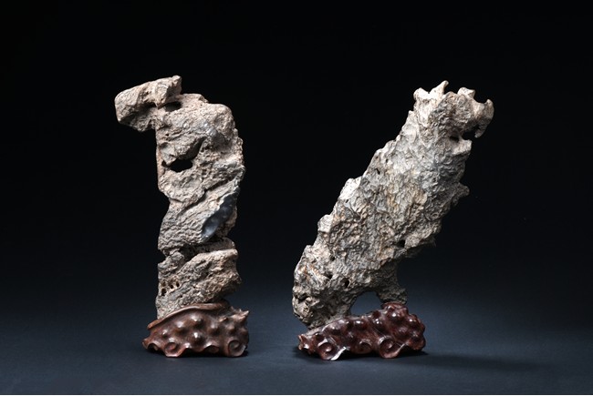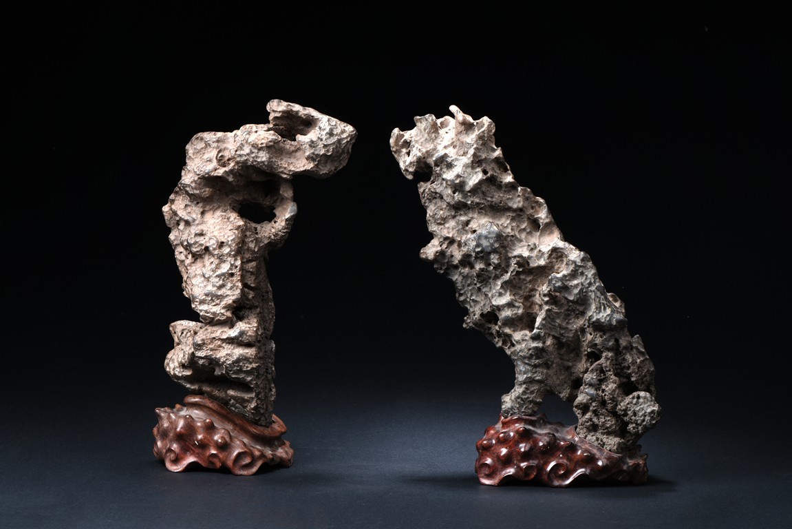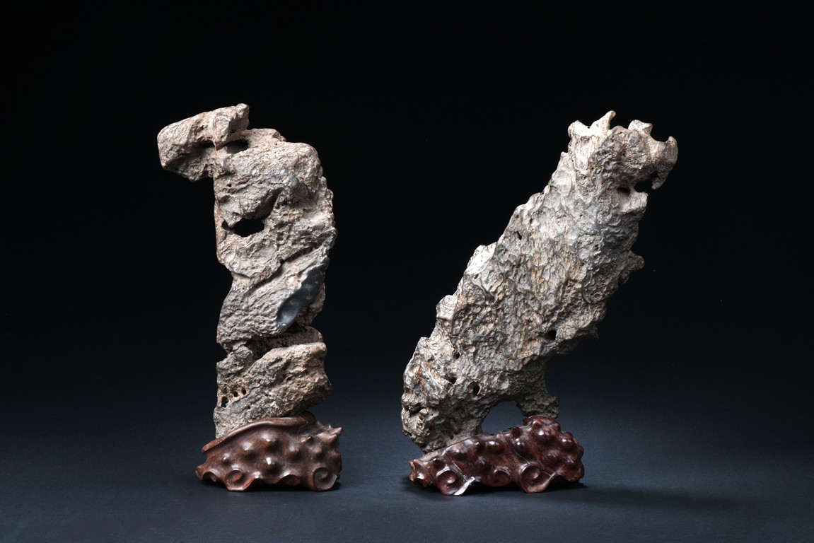 A SET OF TWO LINGBI SCHOLAR'S ROCKS 靈璧石兩件