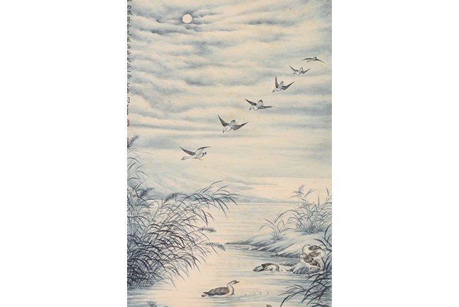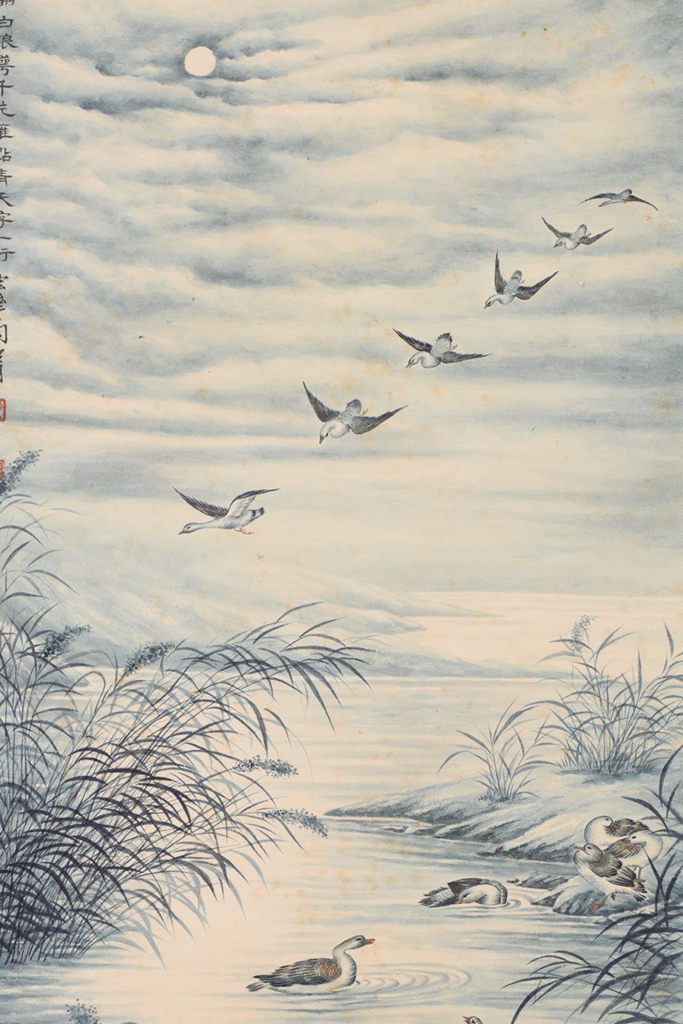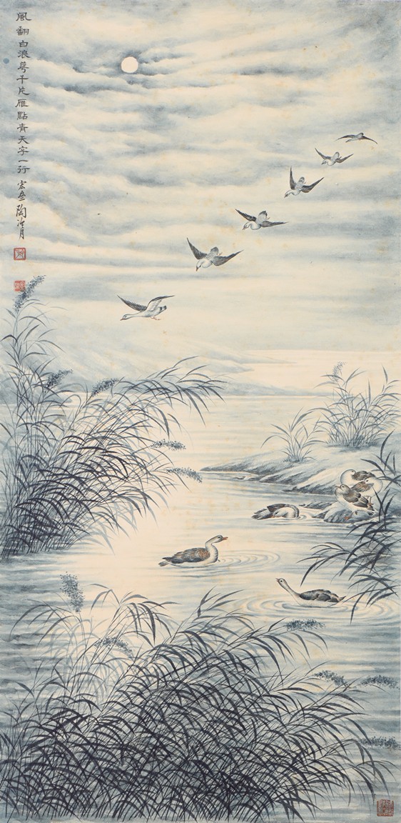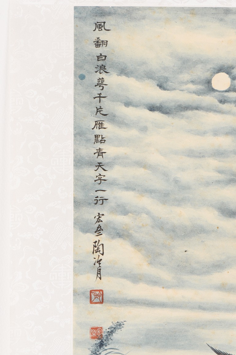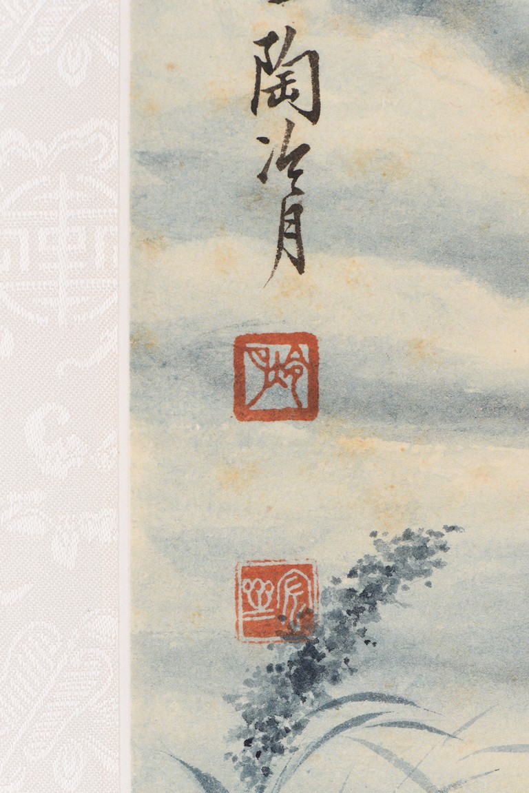Tao Lengyue: Ink and color on paper. Landscape. Hanging scroll. Signed Tao Lengyue and with three seals of the artist.