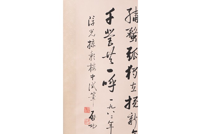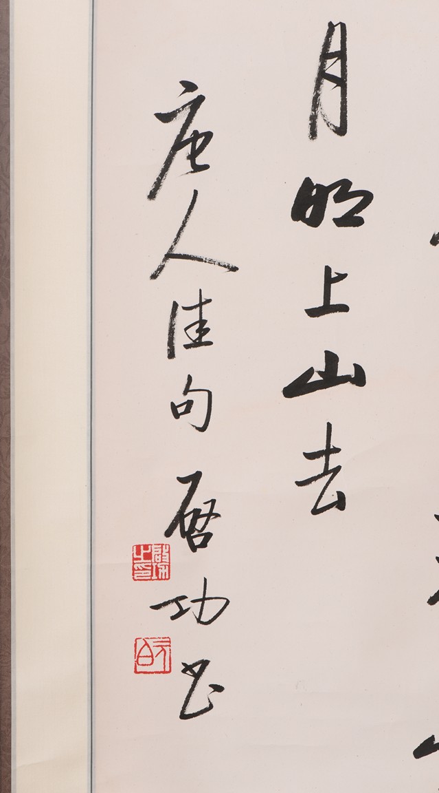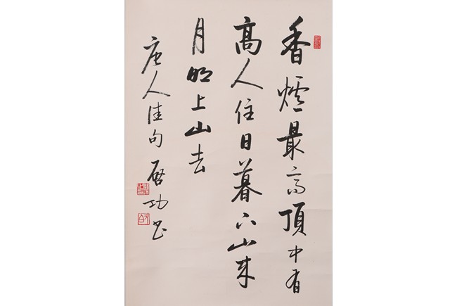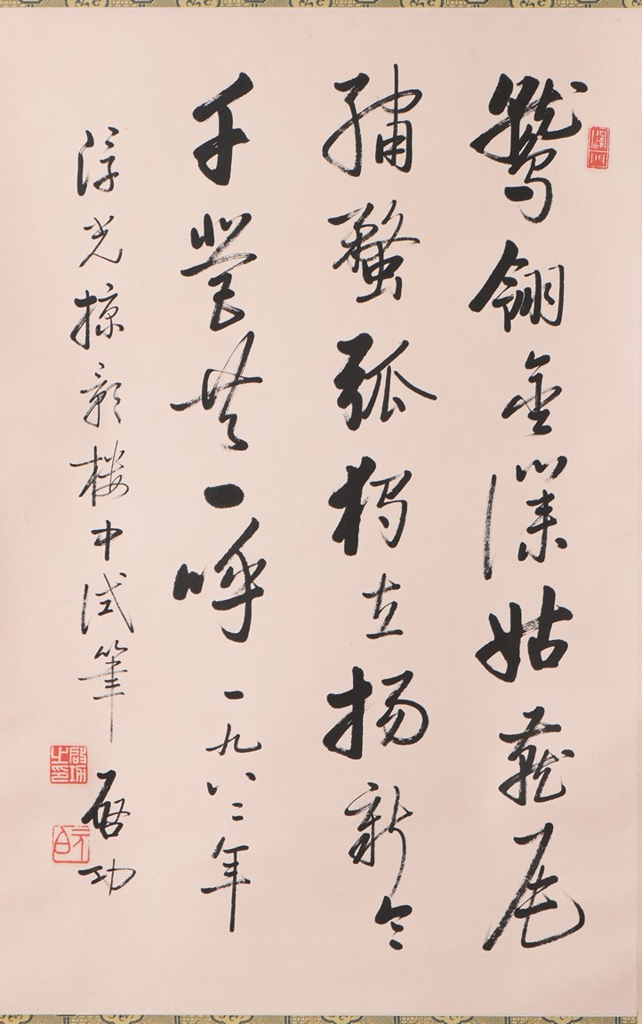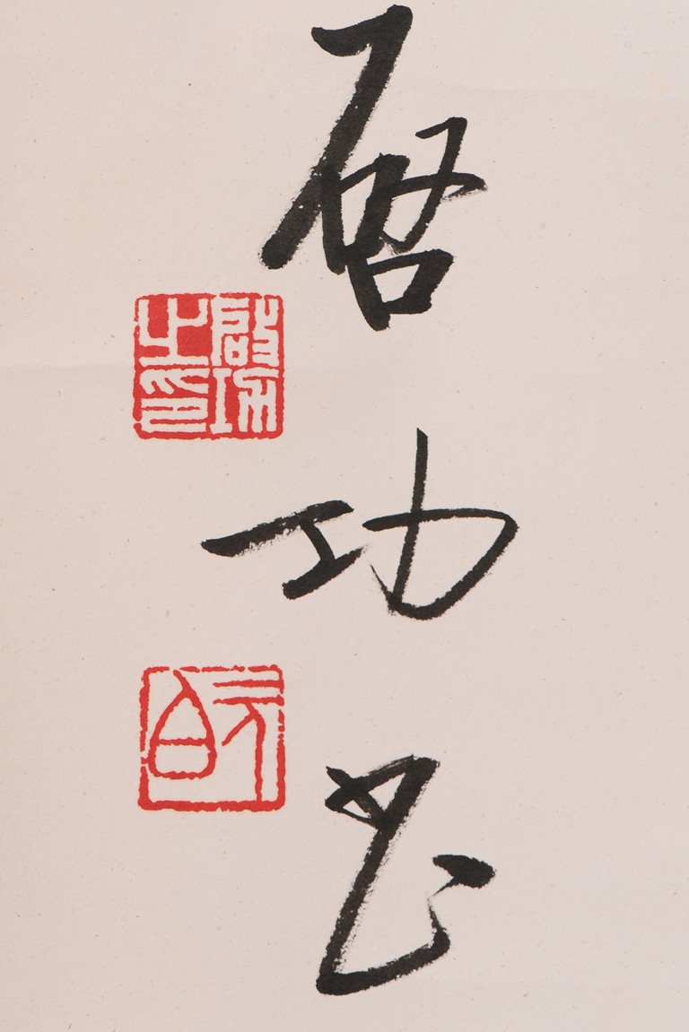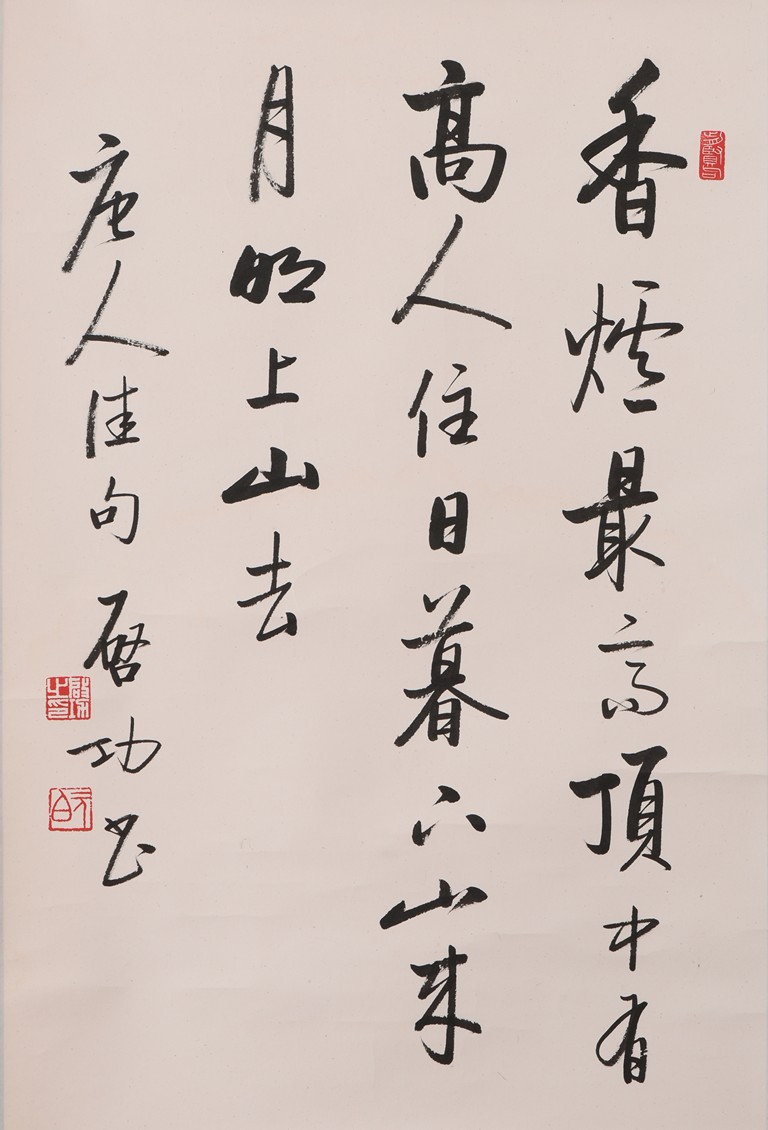 Ink on paper. Running script calligraphy. Hanging scroll. Each inscribed and signed, with three seals of the artist.