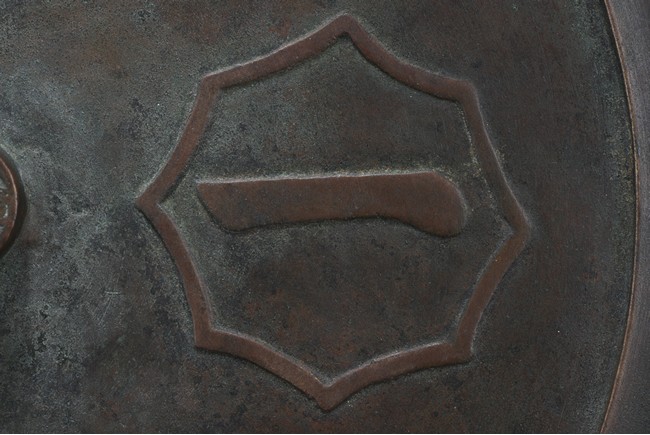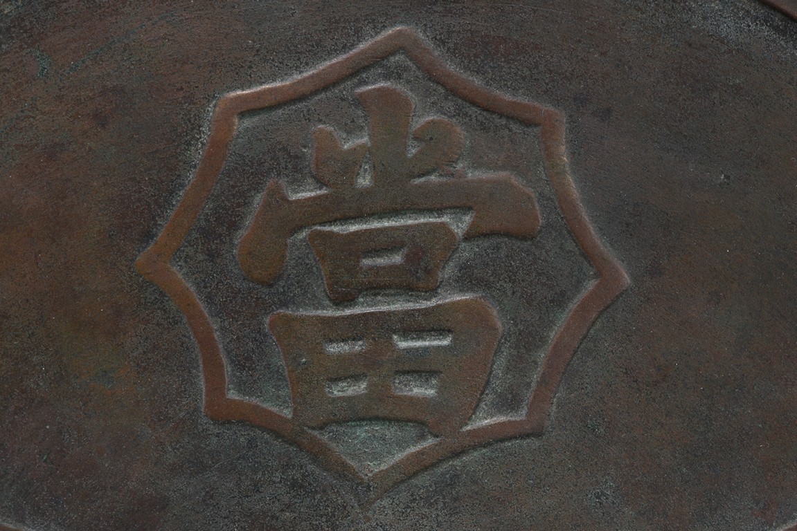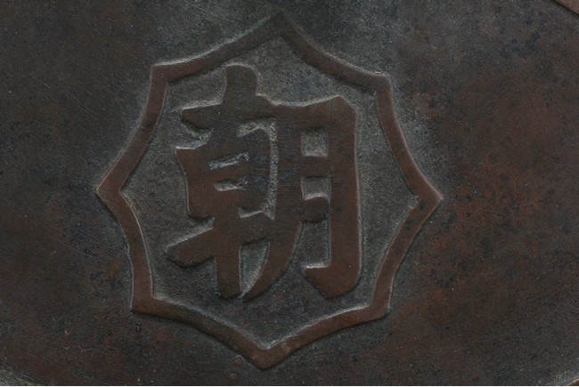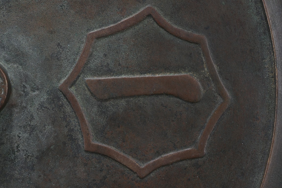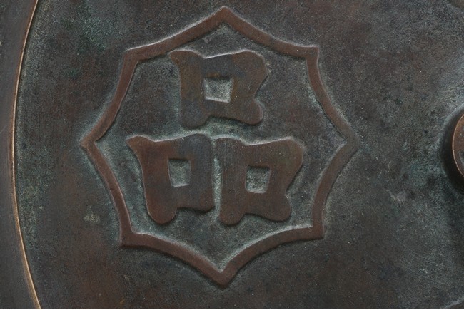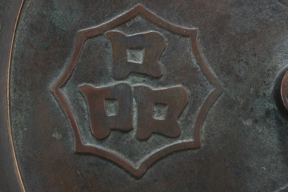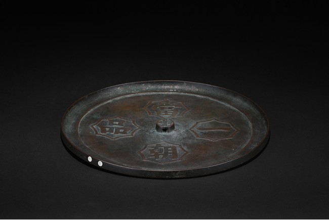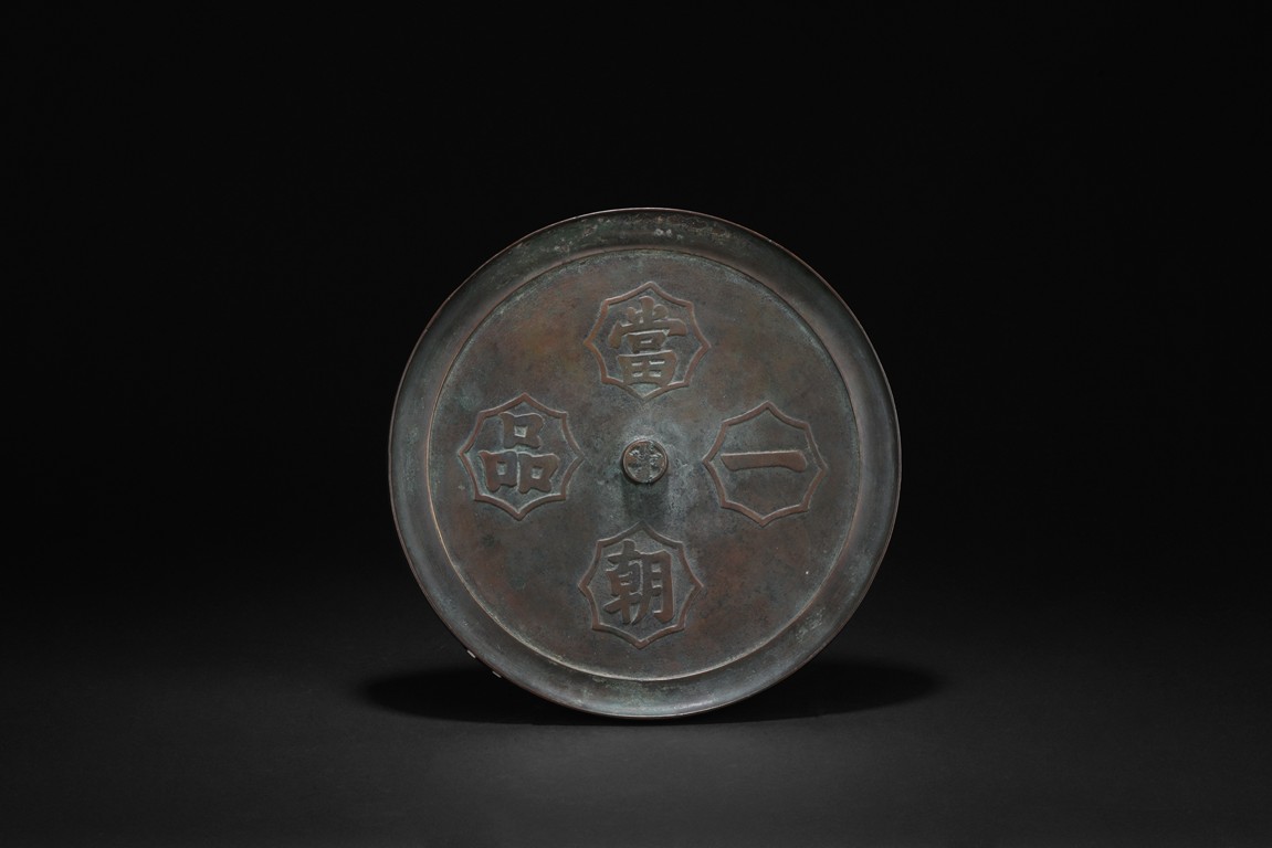 "Of circular form, the surface finely cast with four characters ""YI PIN DANG CHAO"" in relief and each character is enclosed in a octagonal border. Late Qing Dynasty period."