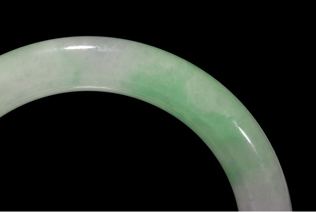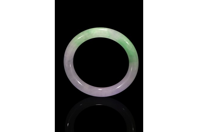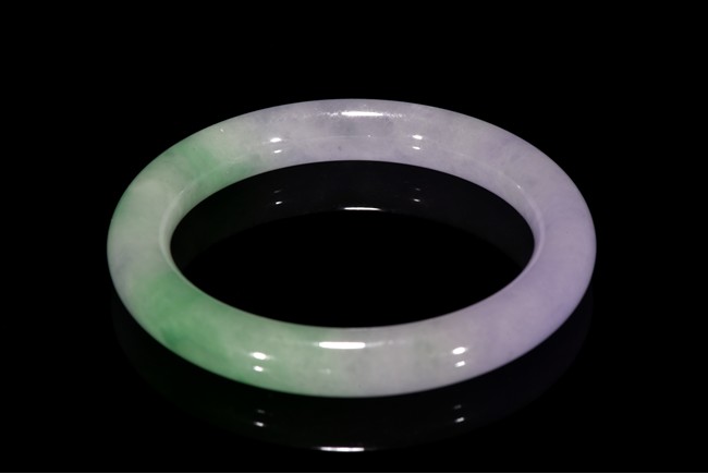 The well translucent jadeite bangle nearly half of lavender and half of apple green tone.