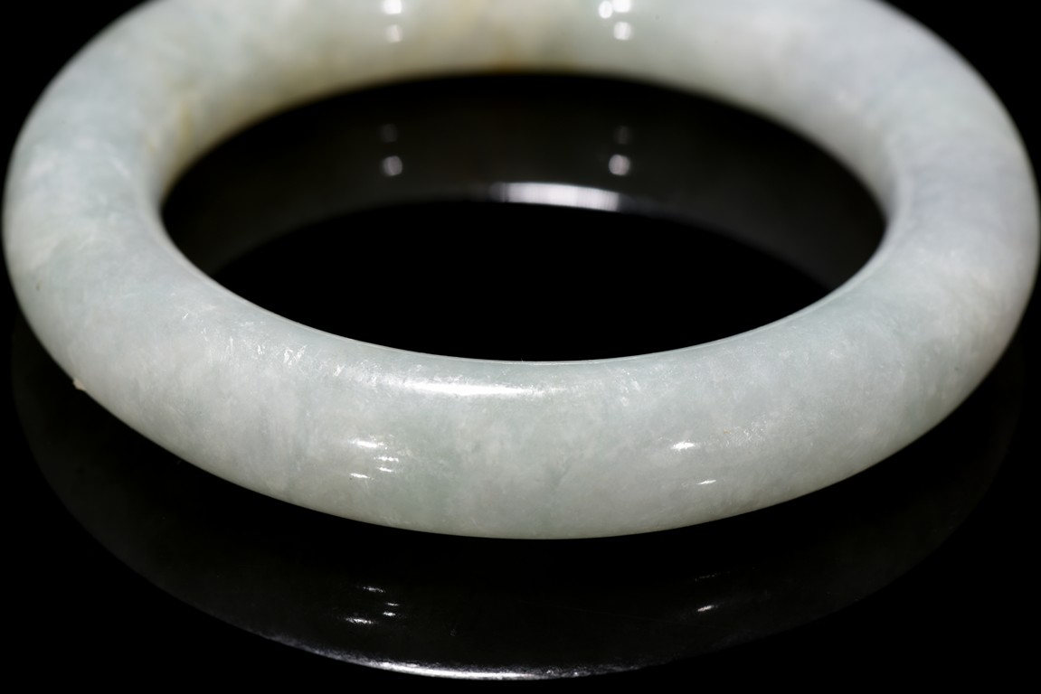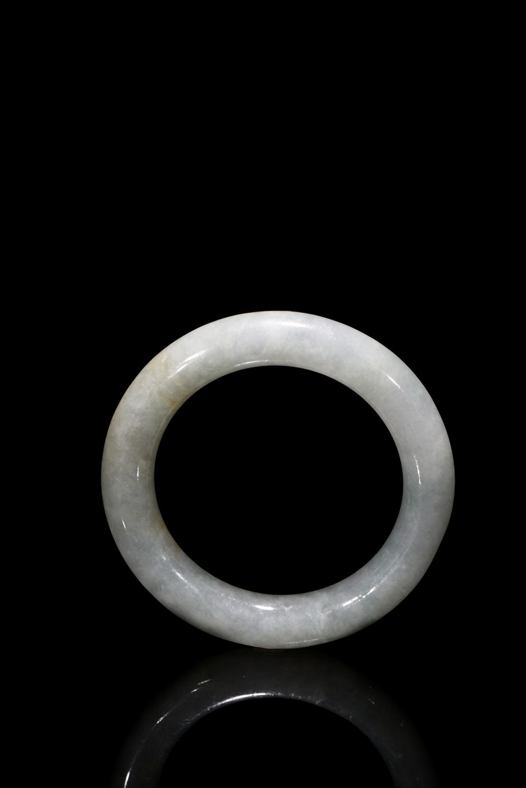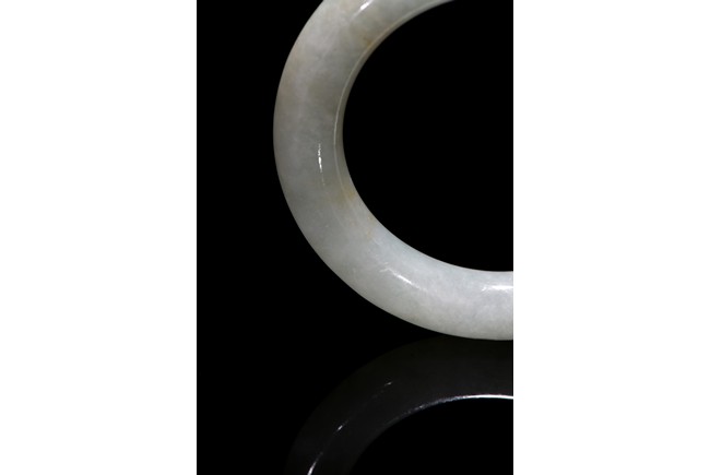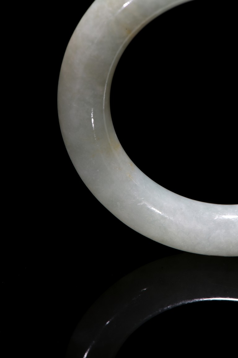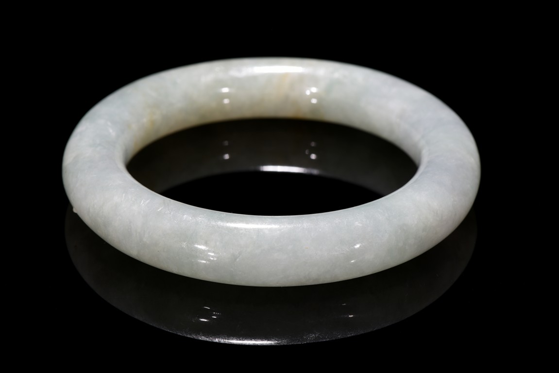The bangle is of translucent white tone with streaks of russet tone. Qing Dynasty period.