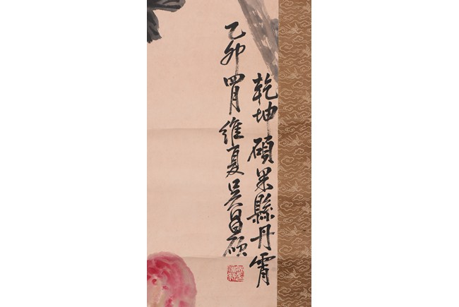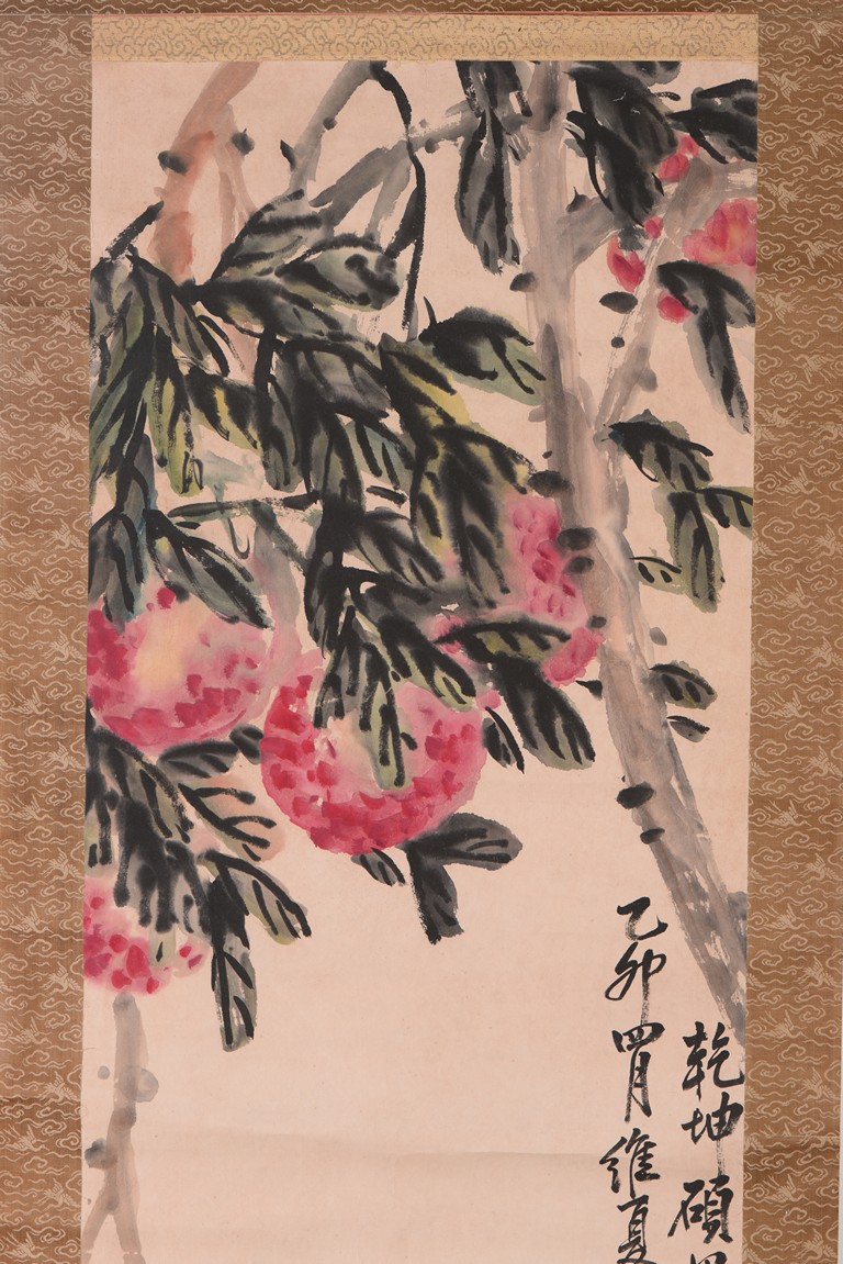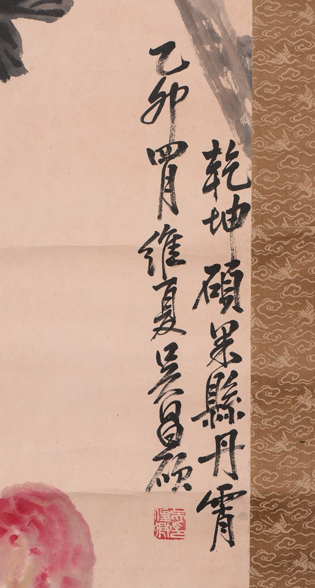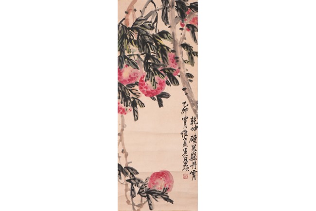 WU CHANGSHUO: INK AND COLOR ON PAPER PAINTING 吳昌碩 壽桃 紙本 立軸