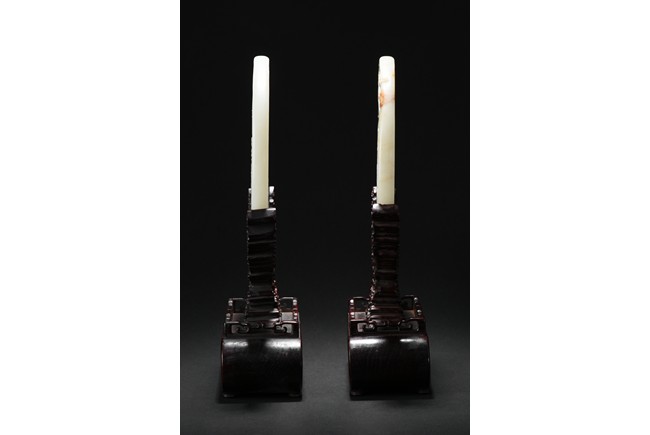 此對插屏由和田白玉籽料雕琢而成, 慎選用料如此之大, 十分珍罕。 其玉質溫潤細膩, 高度淨透, 紋飾雕刻富有層次, 正與反面作截然不同之構圖, 而又互相呼應。 畫面生動描繪了仙人獻壽之場景, 富有文人山水畫般的意境, 為清乾隆時期玉雕藝術之精品, 不可多得。 可參考一件類似白玉插屏, 香港蘇富比 2013年秋拍 拍品號3042, 及美國哈特曼伉儷收藏白玉圓屏, 著錄於Robert Kleiner《Chinese Jades From The Collection of Alan and Simone Hartman》一書, 香港, 1996, 第132頁.