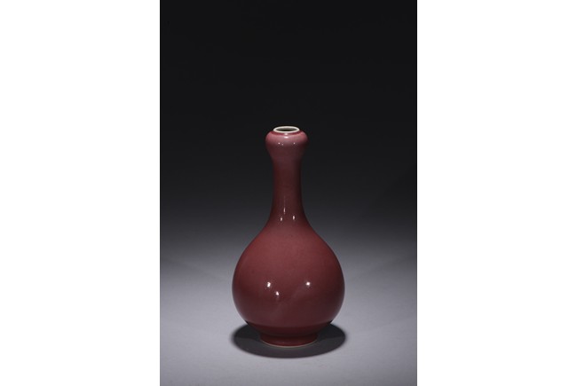 可參考一件類似紅釉蒜頭瓶,售於倫敦蘇富比2012年5月16日,拍品號178.