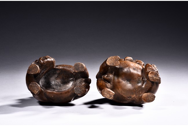 Comprised of a shou and lu star figure shown sitting on a buffalo, the shou star shown holding a peach and staff, the lu star shown holding a scroll, both with benevolent expression. Qing Dynasty period.