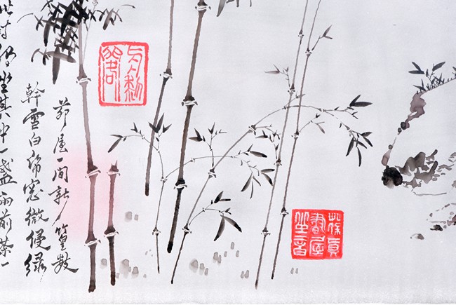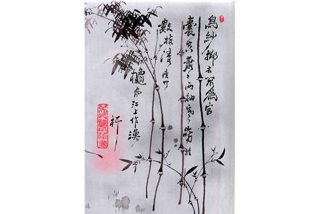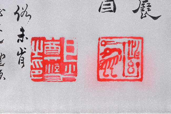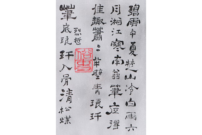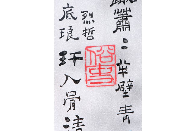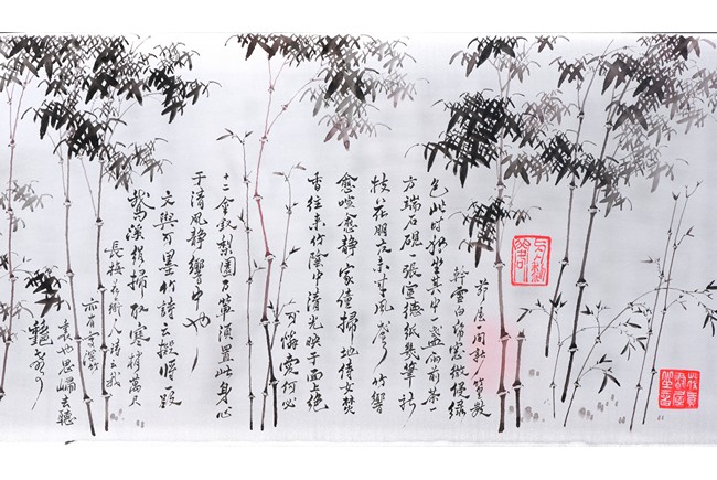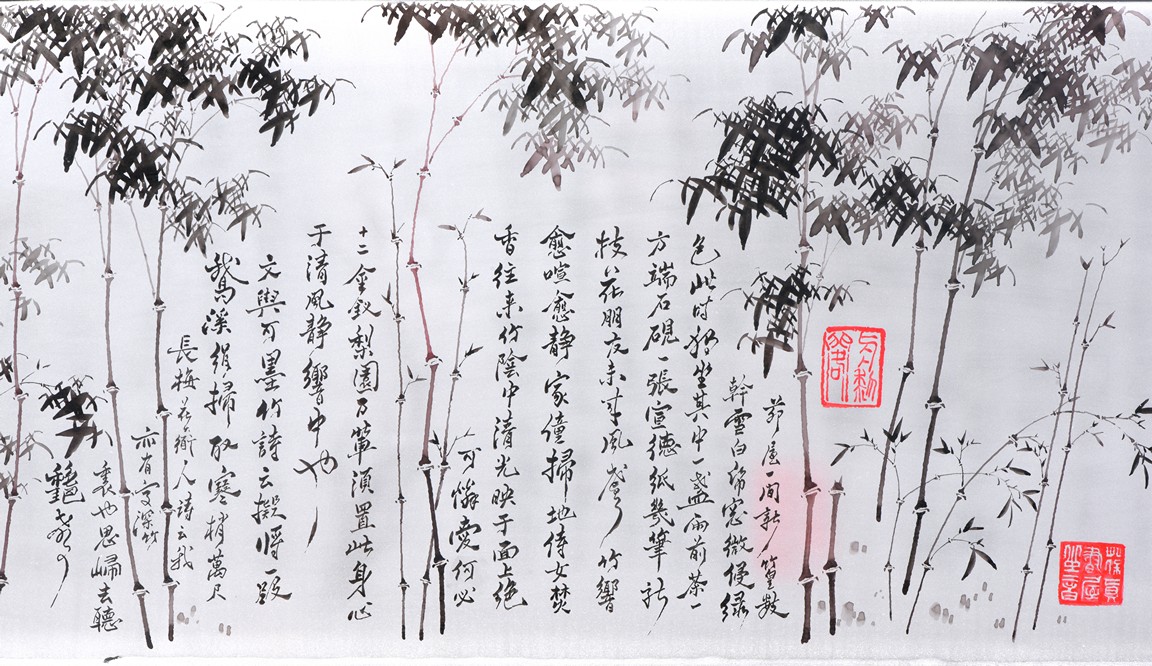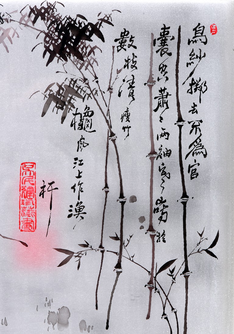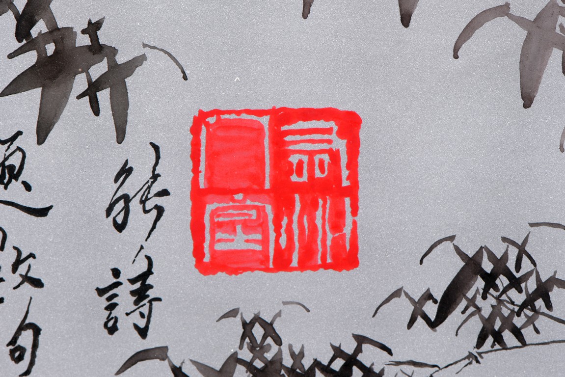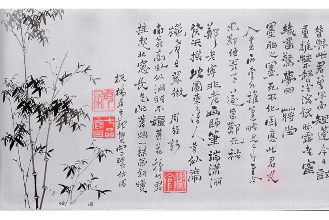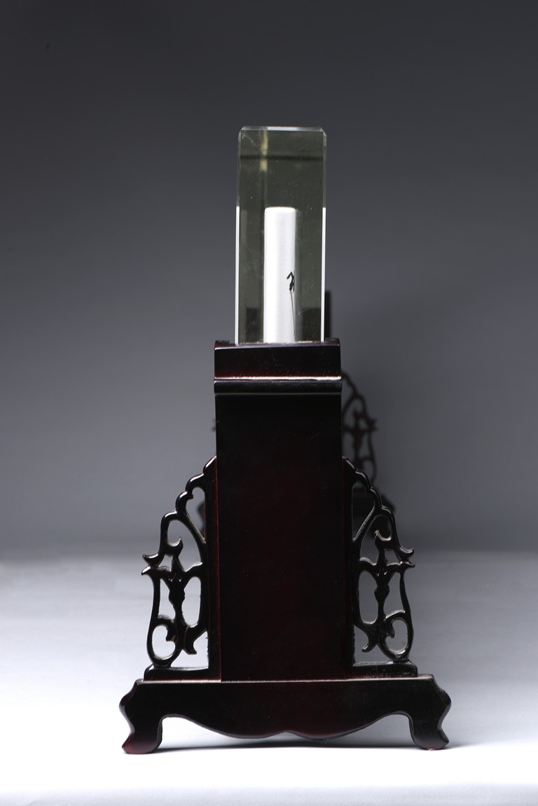 Rectangular modelled, the transparent glass table screen is finely inside-painted with poems, bamboos, and orchids in the manner of Zheng Banqiao. 20th century.