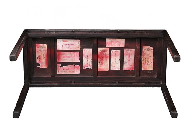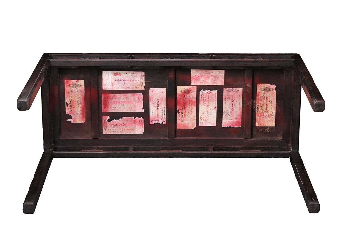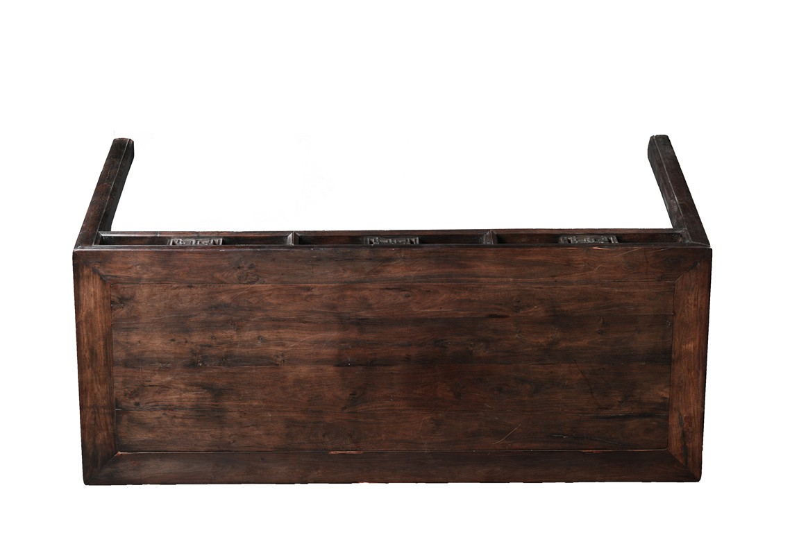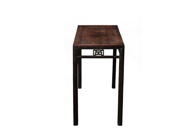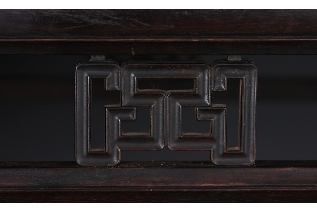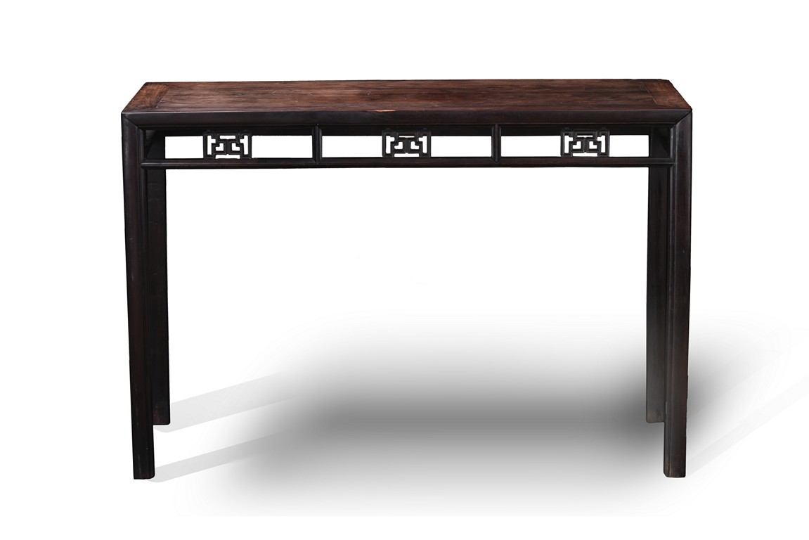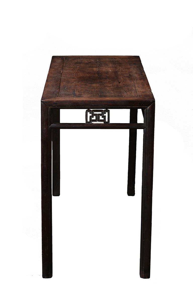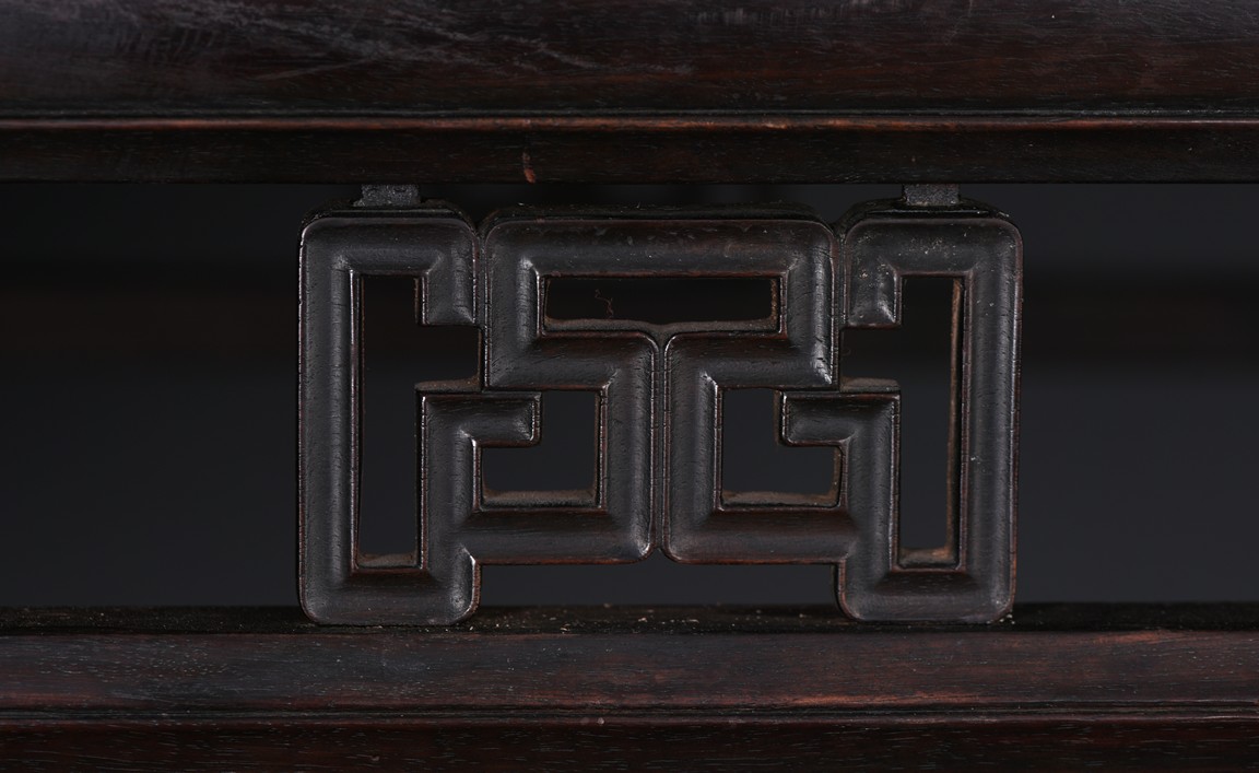 Of elegant form, the single-panel top set within a rectangular frame, supported on four square recessed legs connected by a continuous stylized-pattern apron. Qing Dynasty period.
