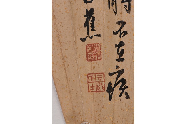 FENG CHAORAN/BAI JIAO: COLOR AND INK ON PAPER FAN PAINTING    馮超然/白蕉 山水人物畫 行書 扇面