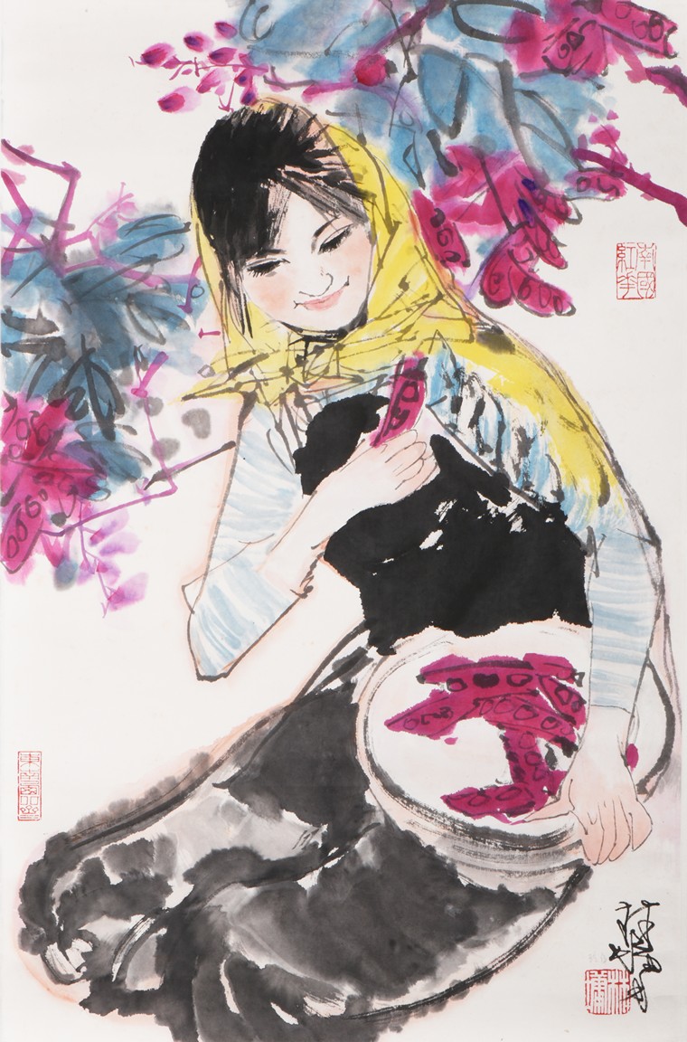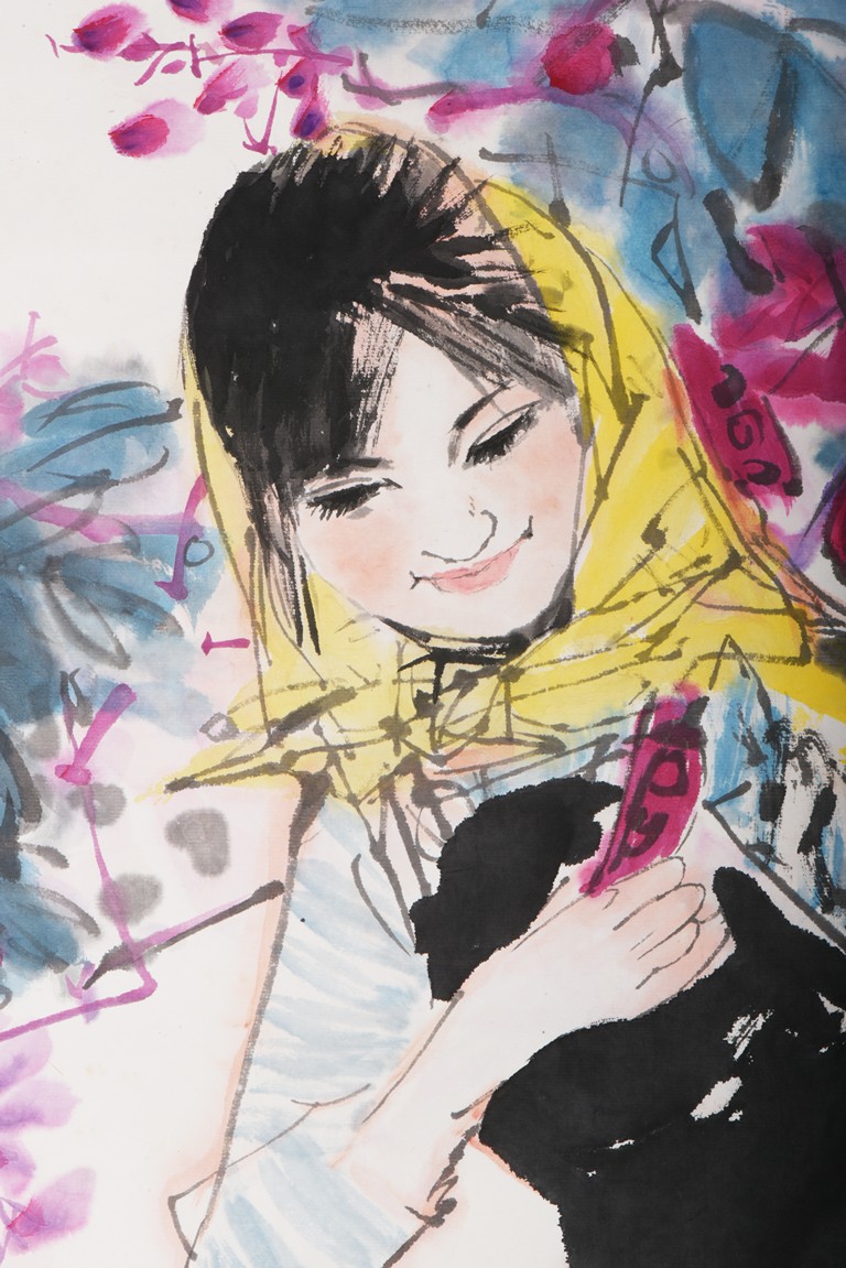 LIN YONG: INK AND COLOR ON PAPER PAINTING 林墉 少女圖 設色紙本