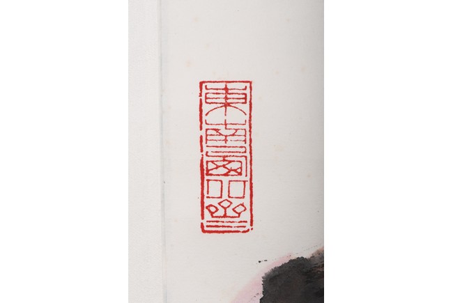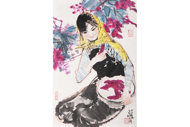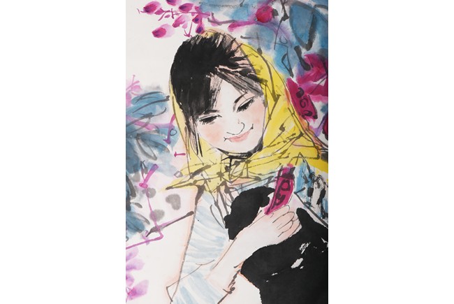 Ink and color on paper. Young girl. Singed Lin Yong and with two seals of the artist.