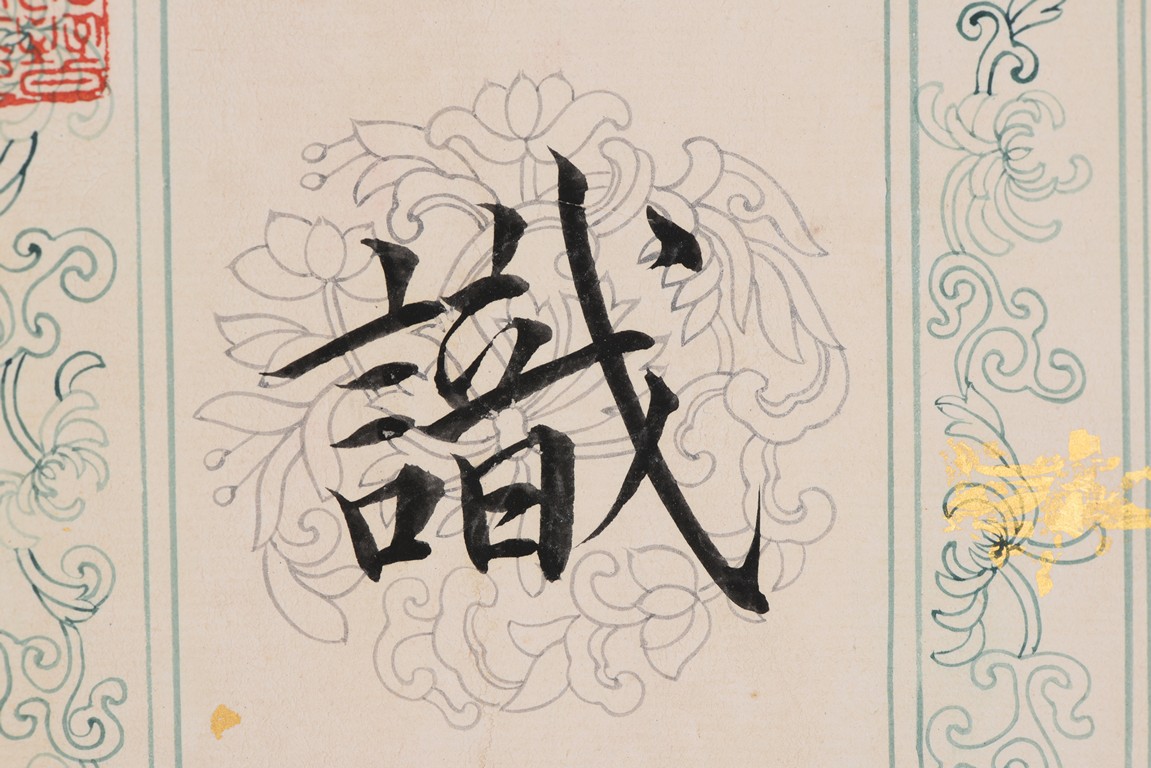 Ink on paper. Regular script. Hanging scroll. Signed and with two seals of the artist.