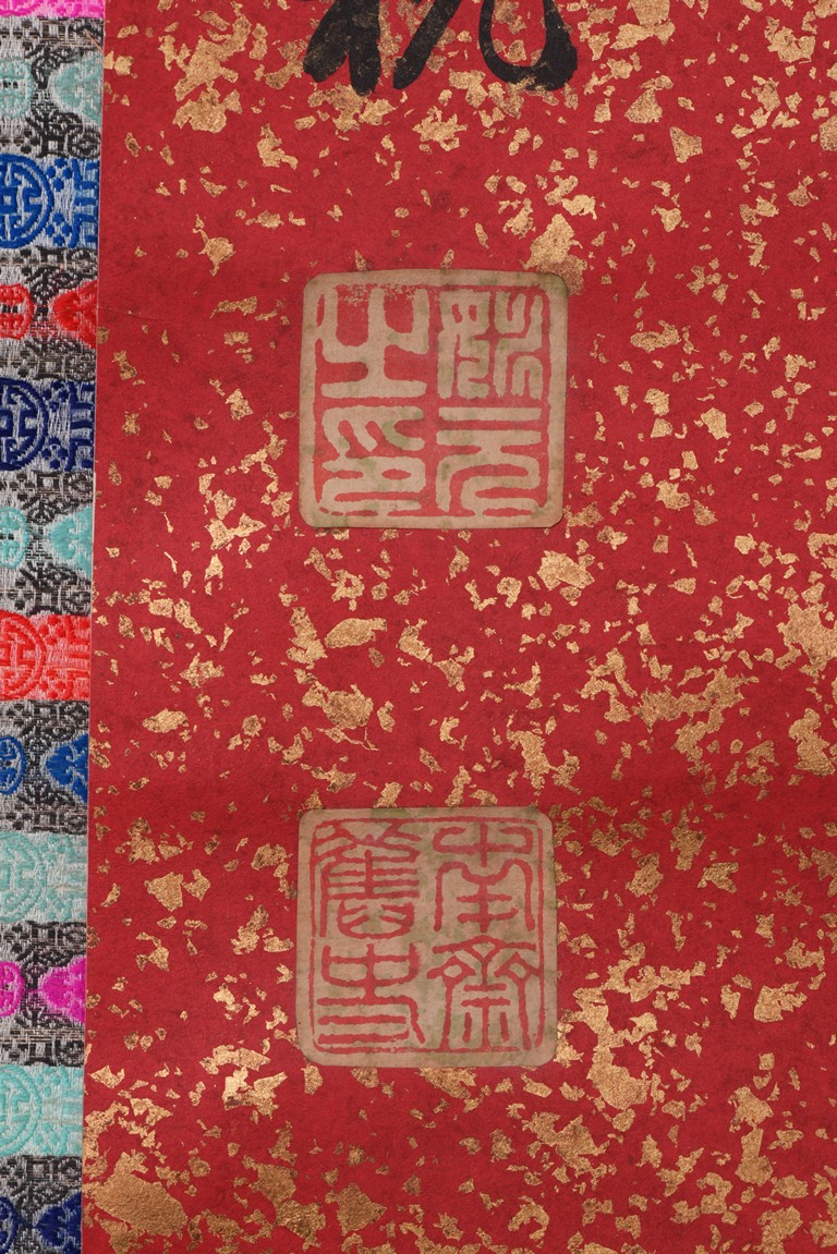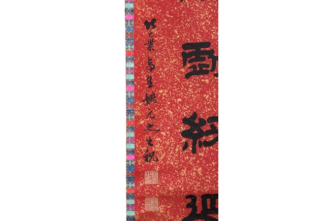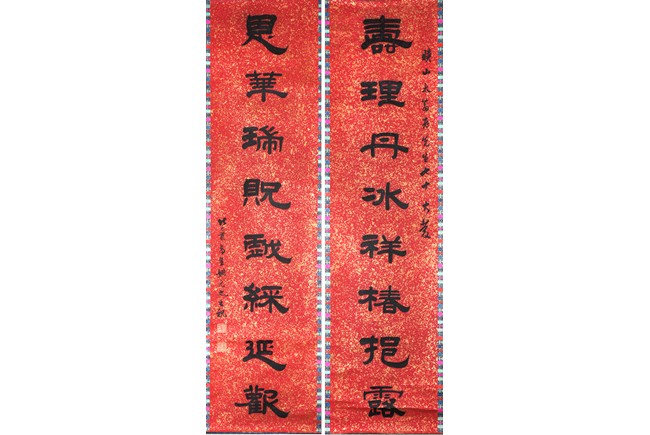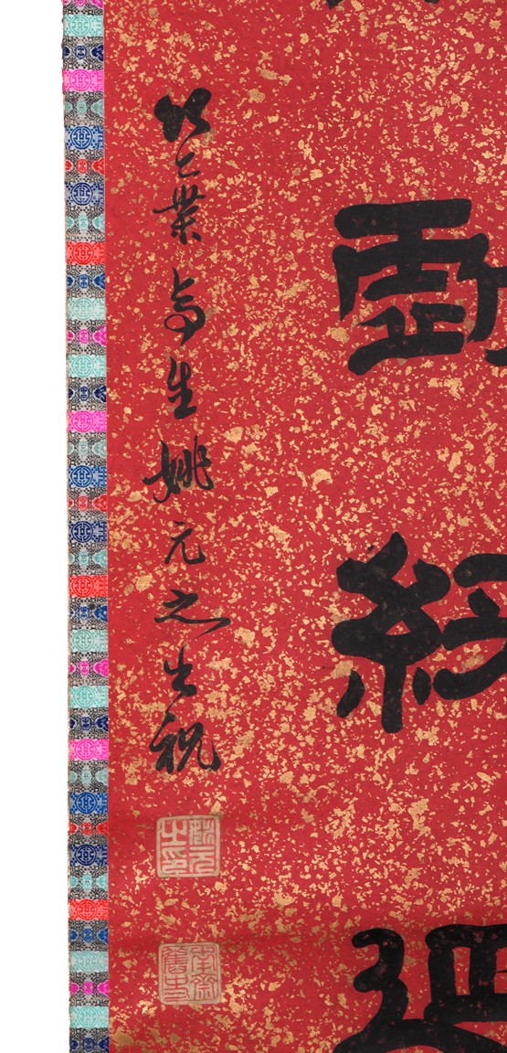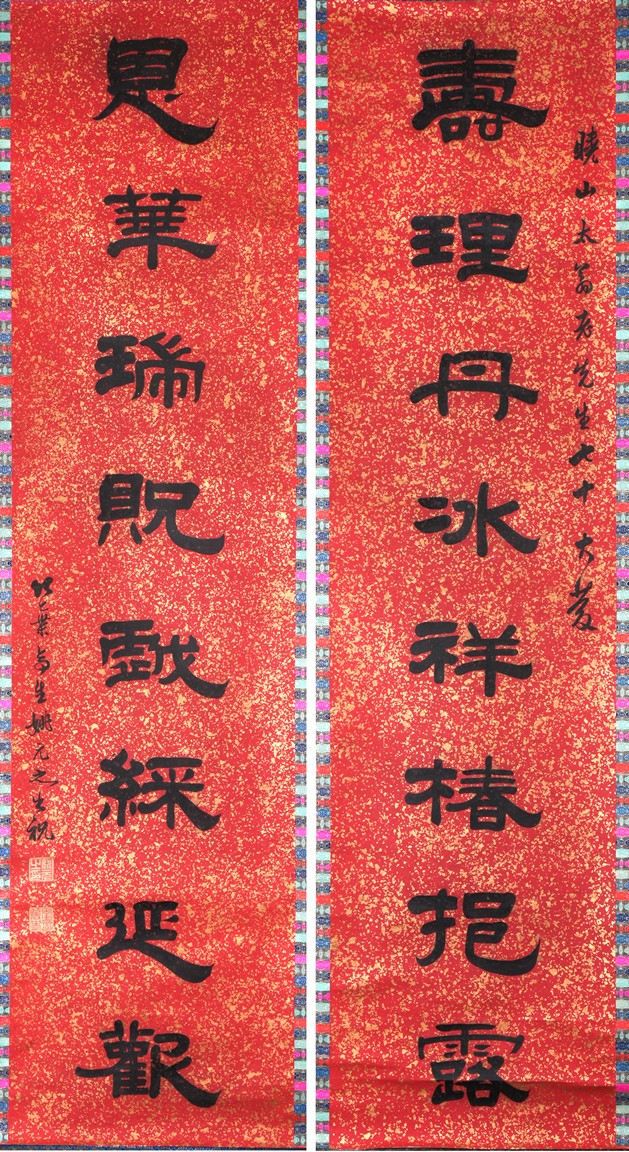 Ink on paper. Official script couplet. Hanging scroll. Signed Yao Yuanzhi and with two seals of the artist.