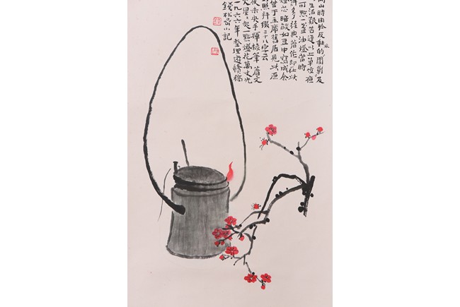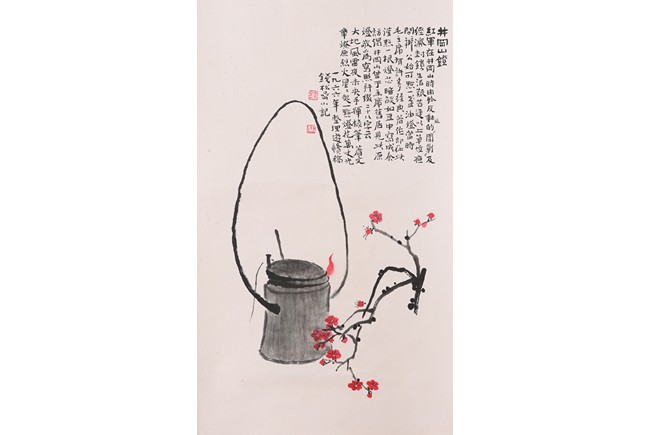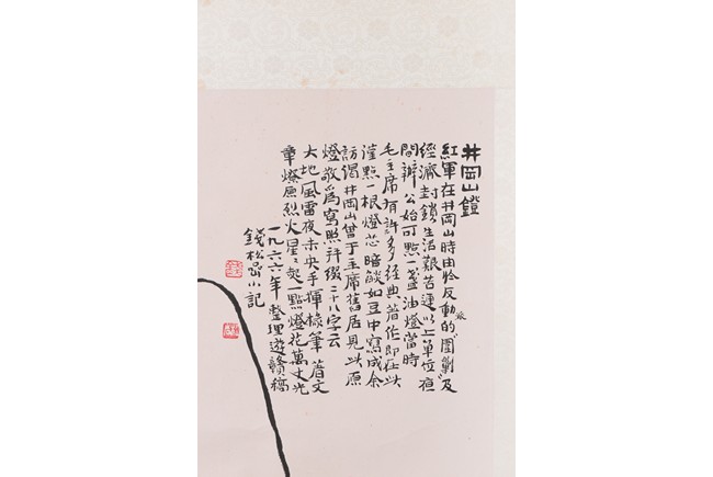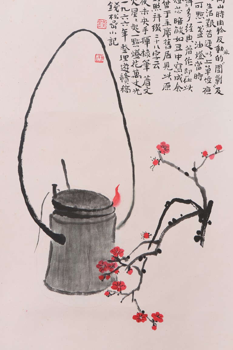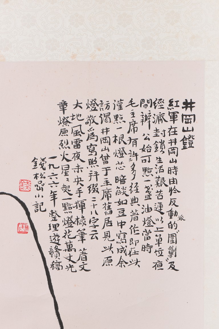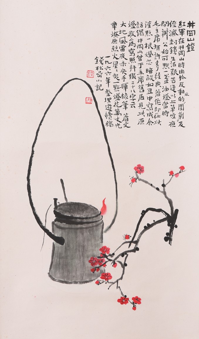 Ink and color on paper. lamp of Jing gang shan. Hanging scroll. Inscribed, signed, and dated to the year of 1966, with two seals of the artist.