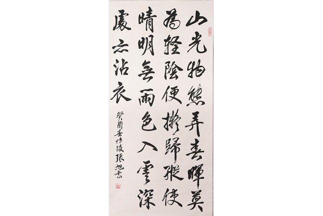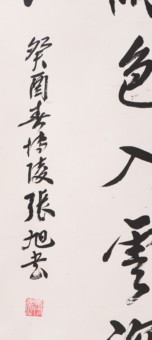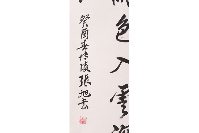 Ink on paper. Running script. Hanging scroll. Signed Zhang Xu and with two seals of the artist.