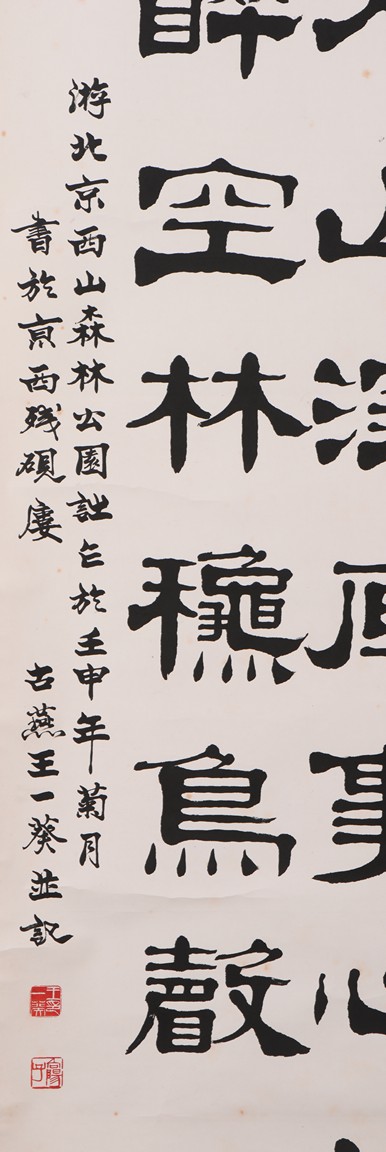 Ink on paper. Hanging scroll. Signed Wang Yikui and with two seals of the artist.