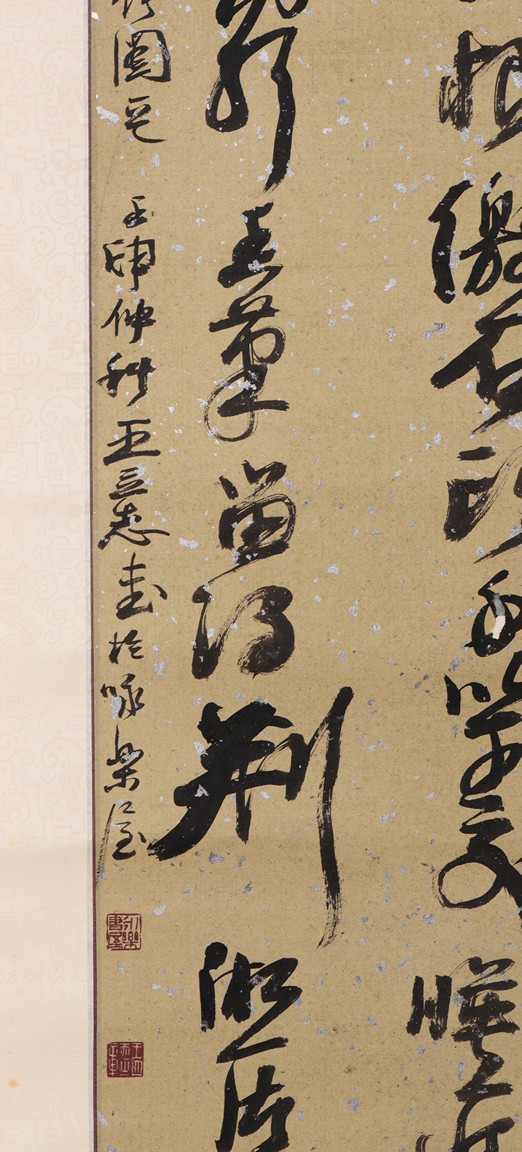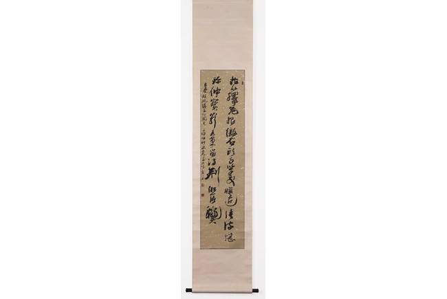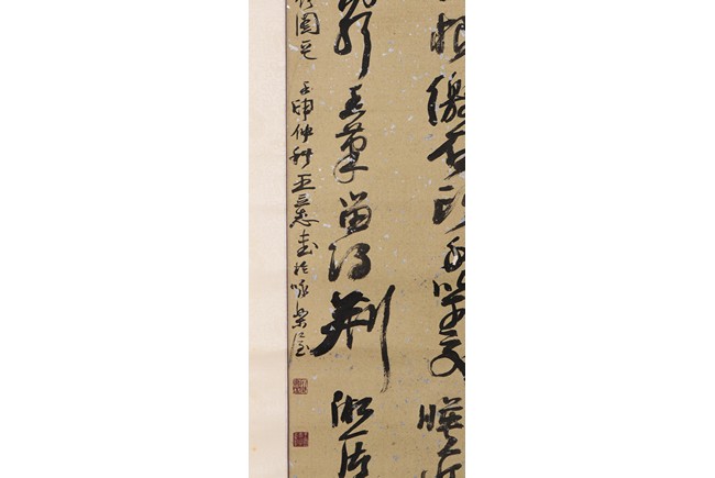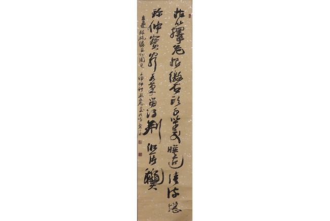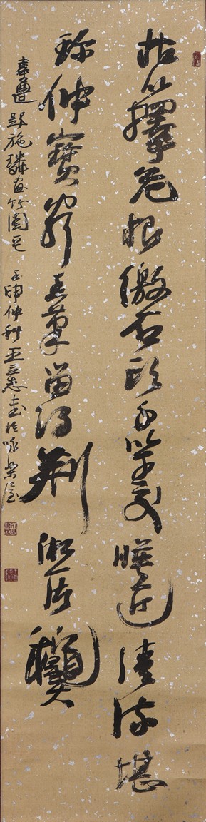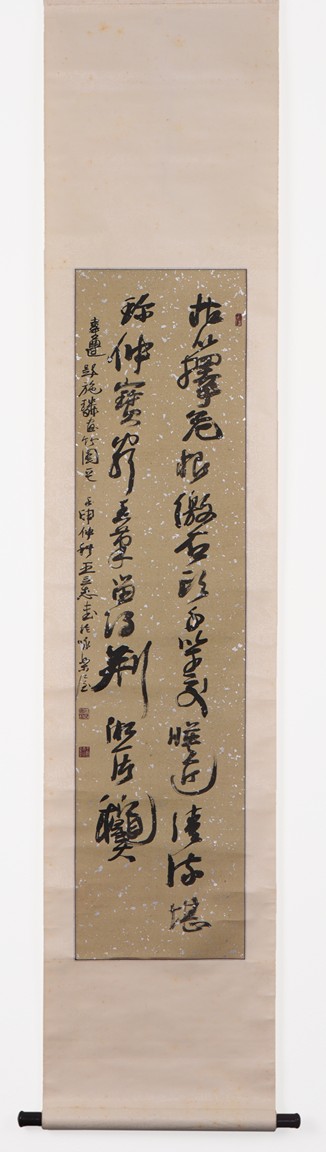 Ink on paper. Cursive calligraphy. Hanging scroll. Signed Wang Lizhi and with three seals of the artist.