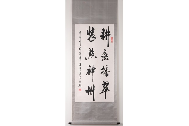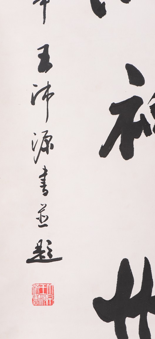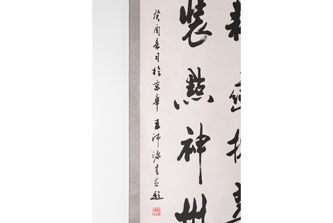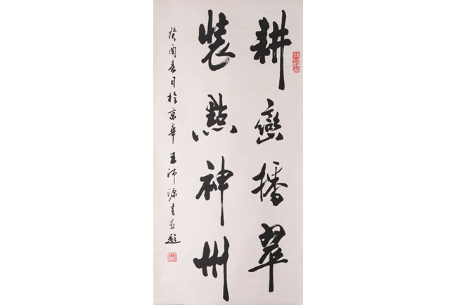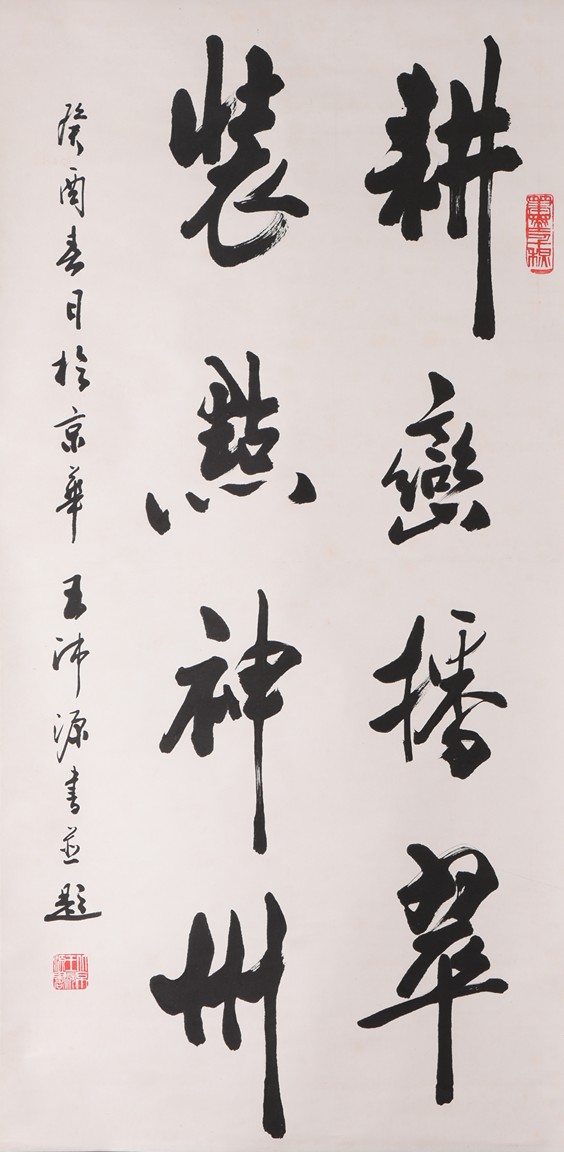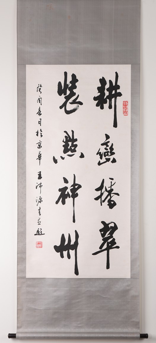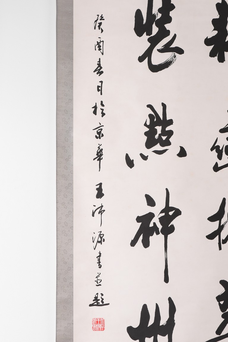 Ink on paper. Running script. Hanging scroll. Signed Wang Peiyuan and with two seals of the artist.