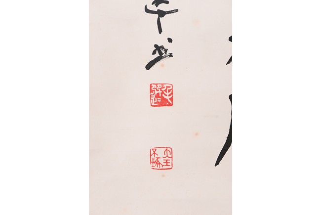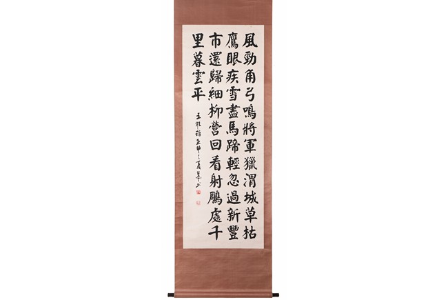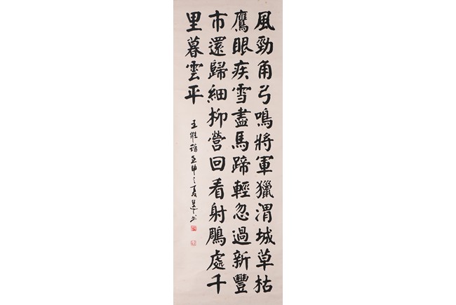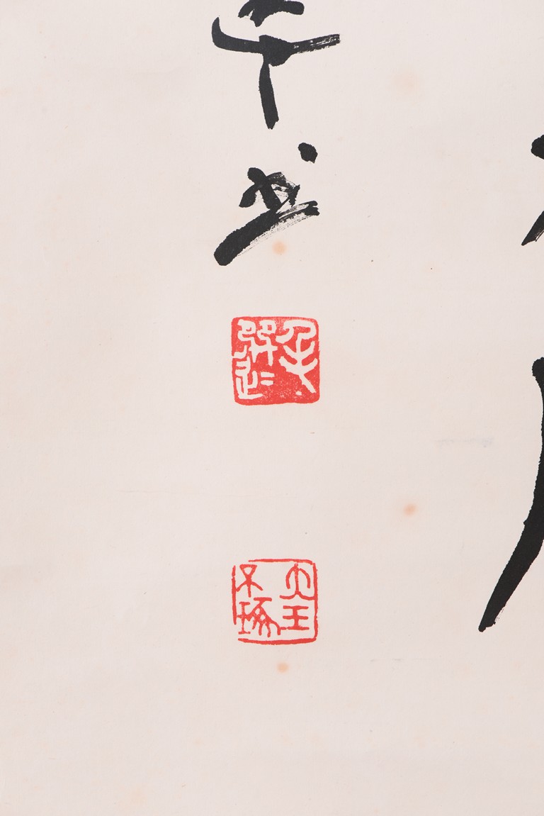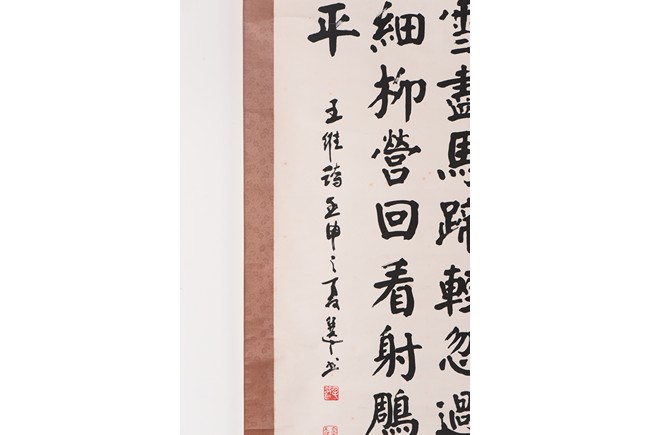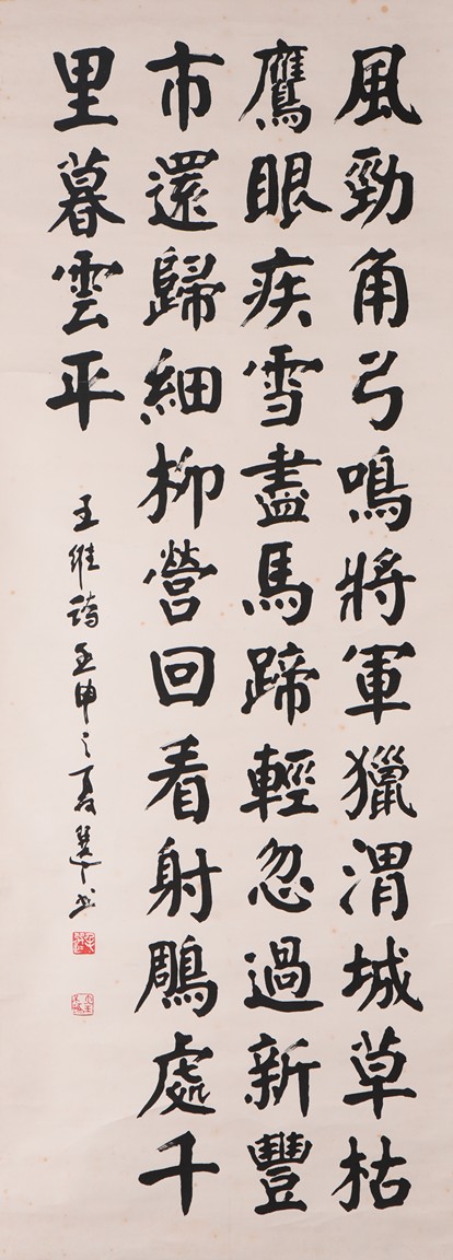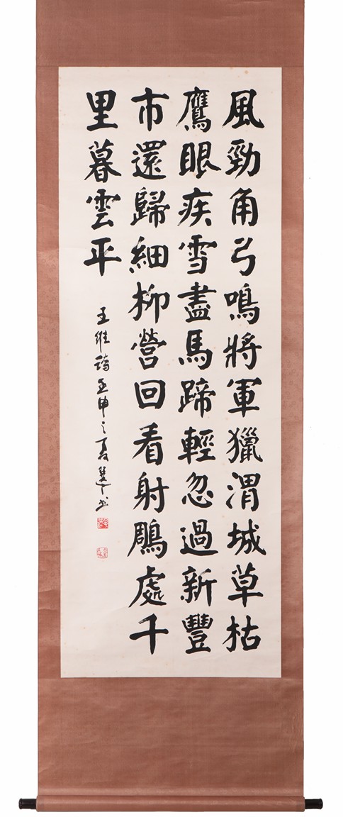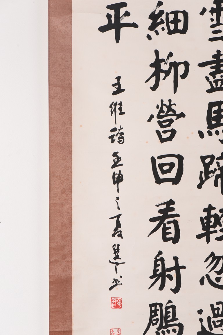 Ink on paper. Regular script. Hanging scroll. Signed and with two seals of the artist.