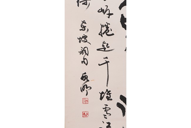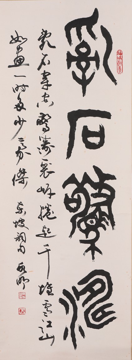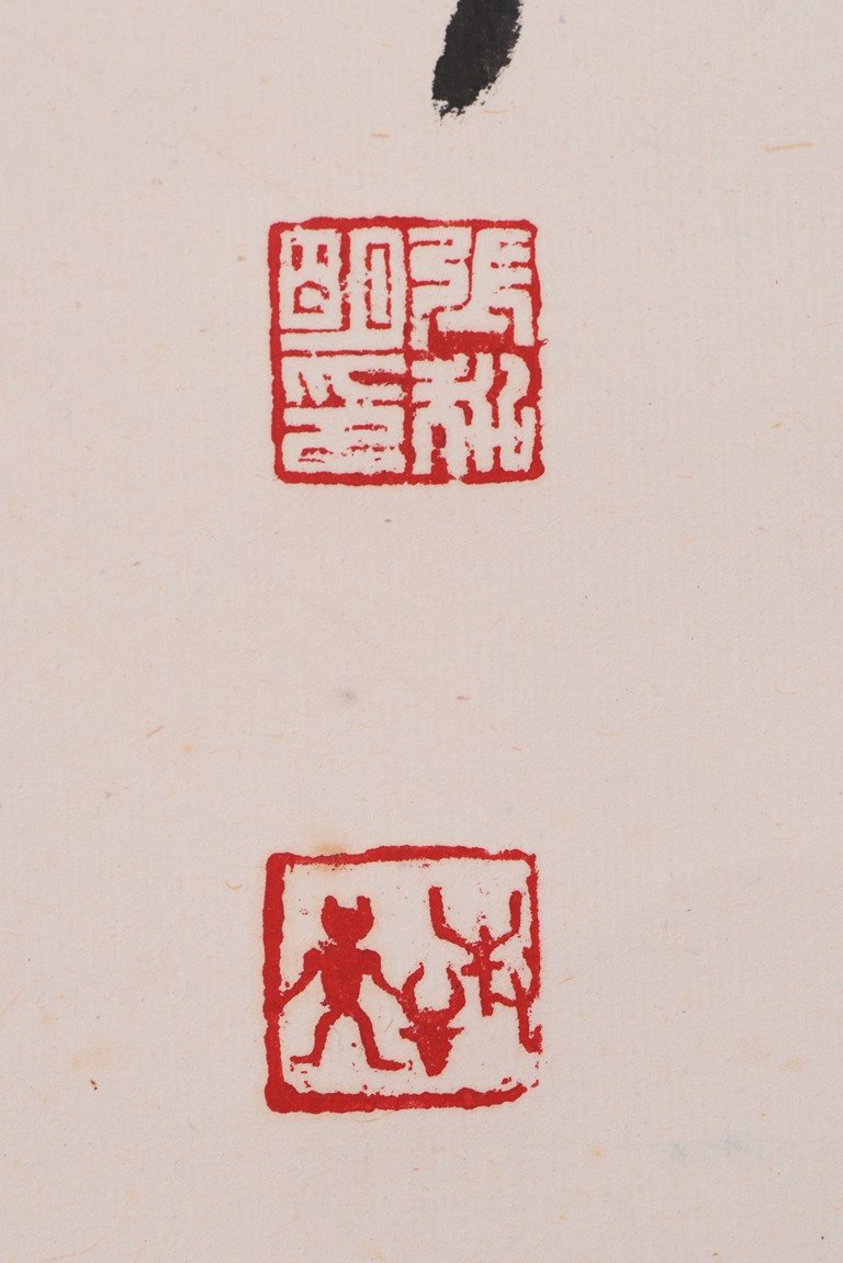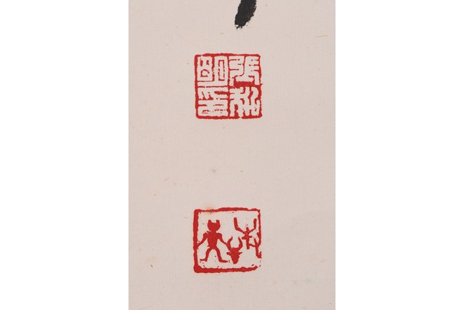 Ink on paper. Hanging scroll. Signed Yongming and with three seals of the artist.