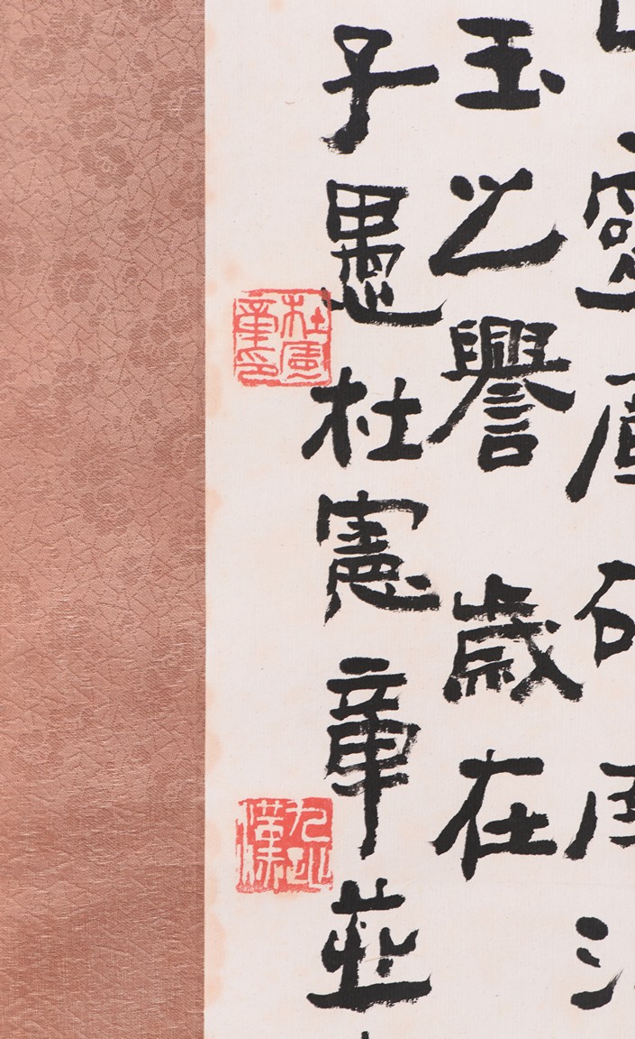 Ink on paper. Hanging scroll. Signed Du Xianzhang and with three seals of the artist.