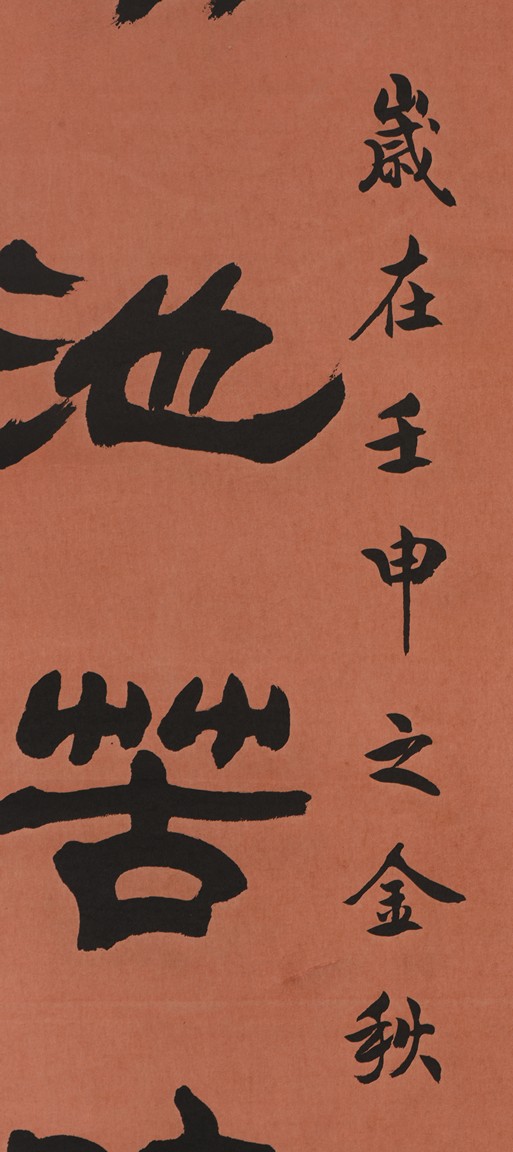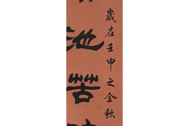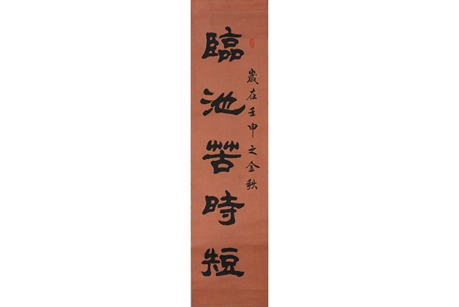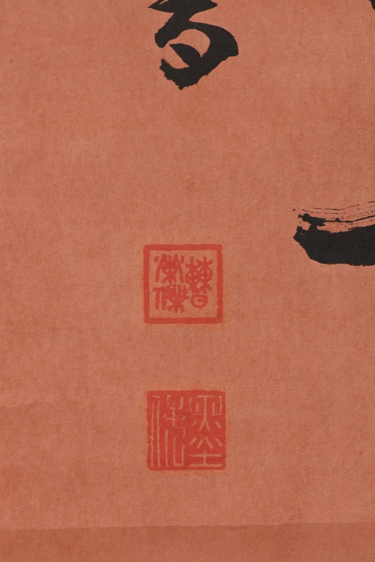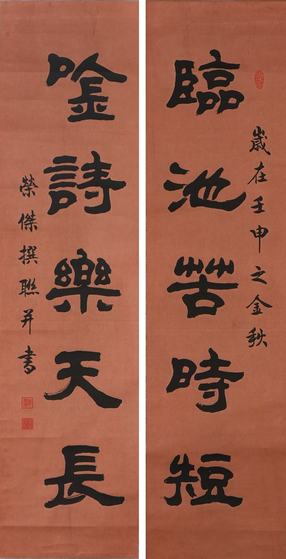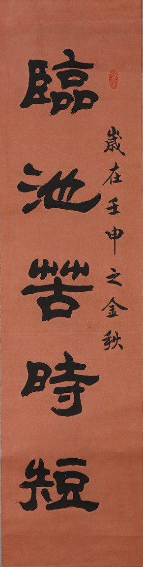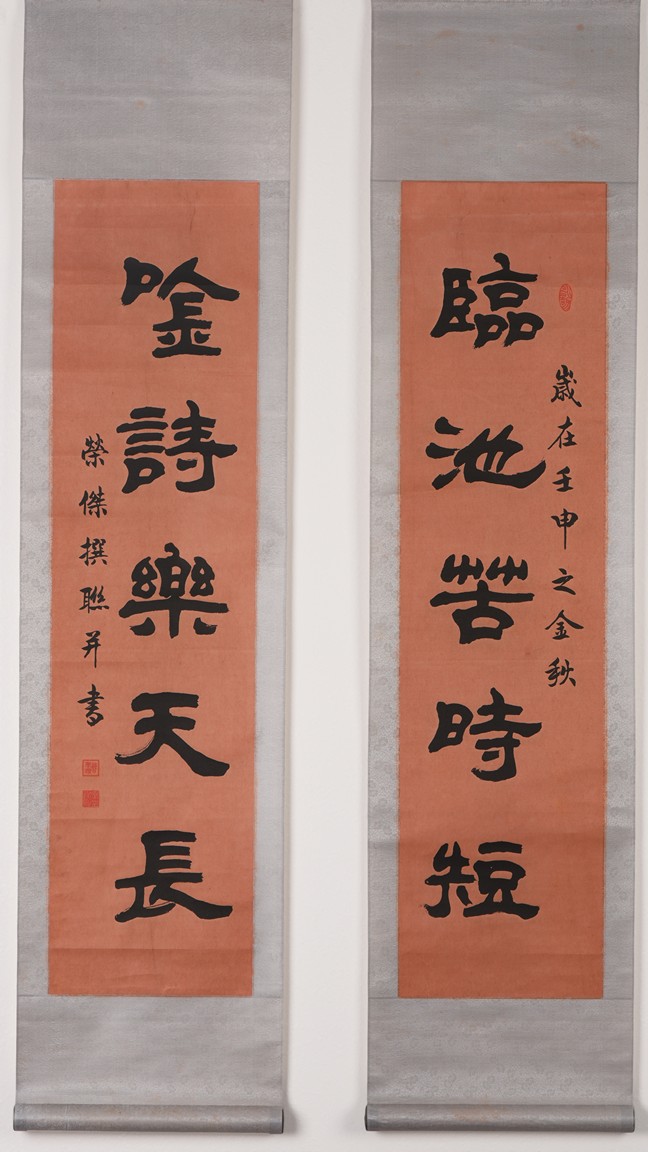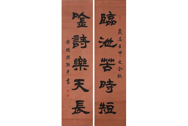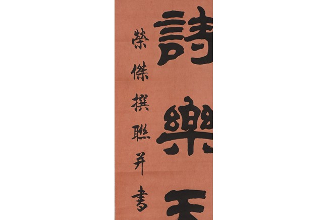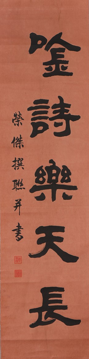 Ink on paper. Hanging scroll. Signed Rongjie and with three seals of the artist.