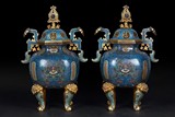 清晚期 掐絲琺瑯蓮紋蓋碗一對