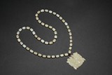 A WHITE JADE 'MYTHICAL BEAST' AND BEAD NECKLACE