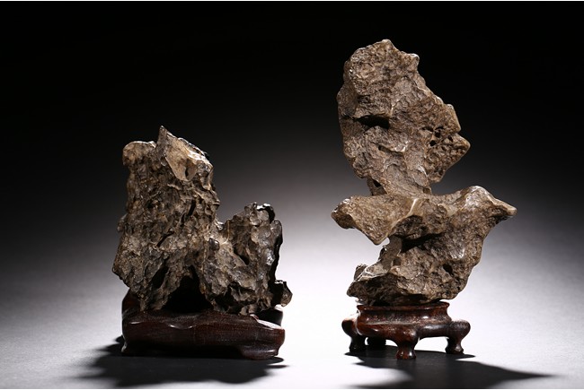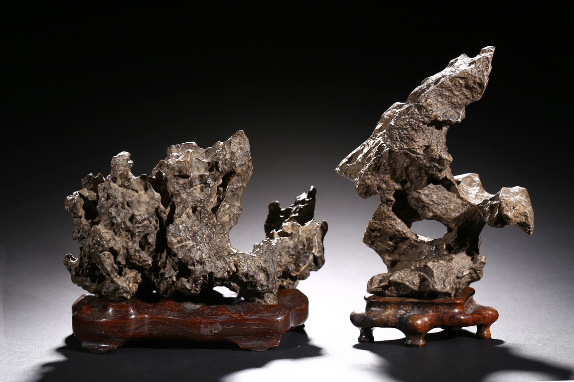 A SET OF TWO LINGBI SCHOLAR'S ROCKS 靈璧賞石 一組兩件