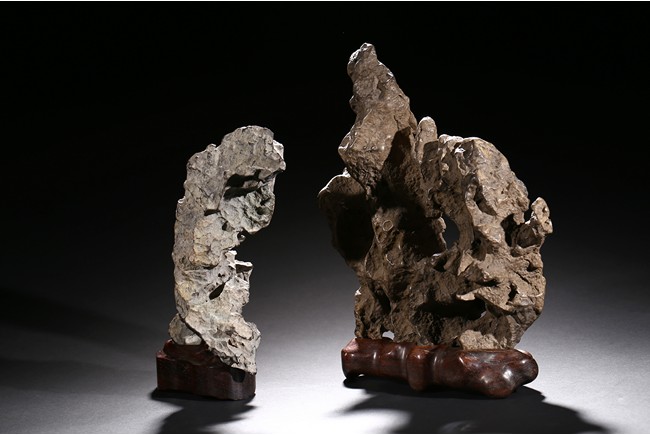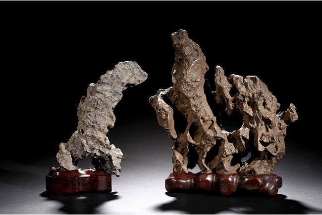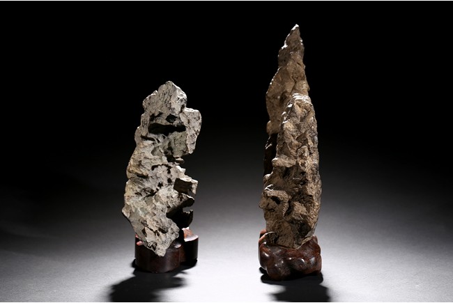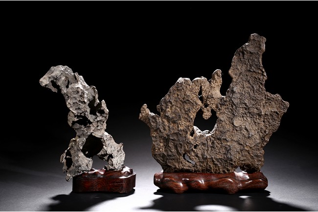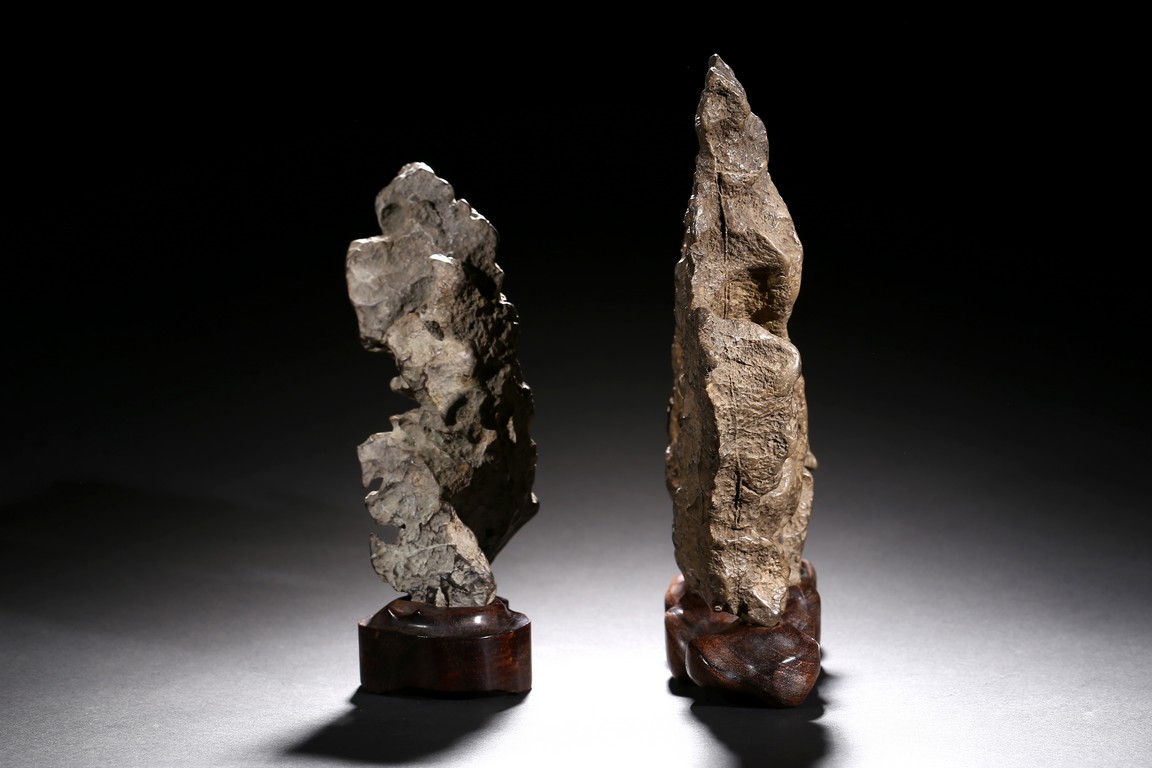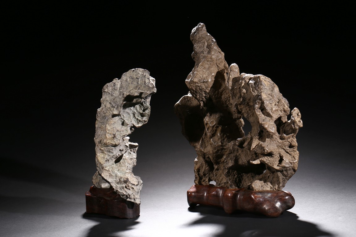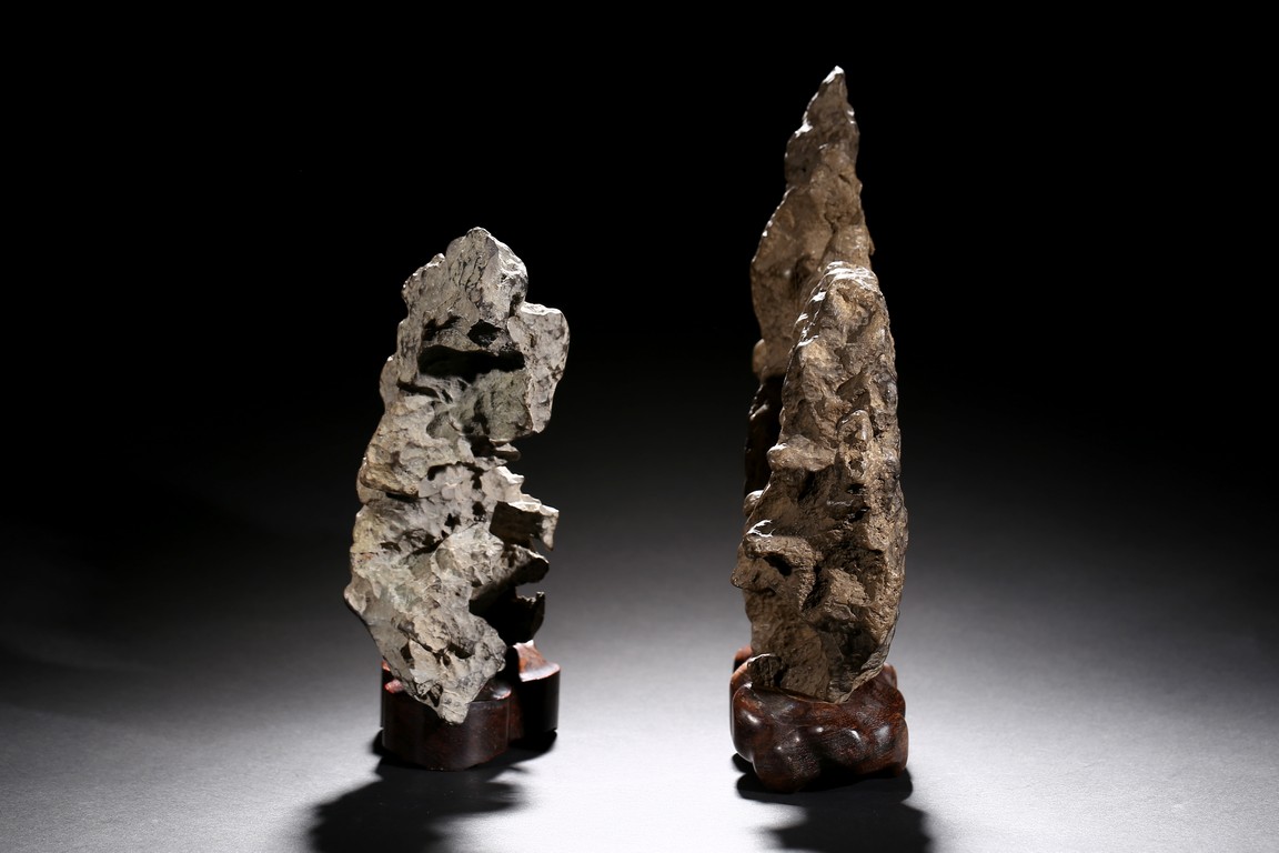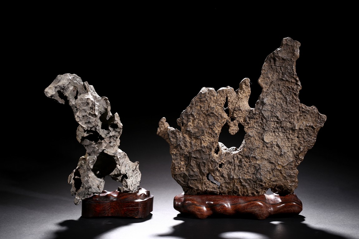 A SET OF TWO LINGBI SCHOLAR'S ROCKS 靈璧賞石 一組兩件