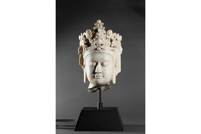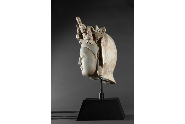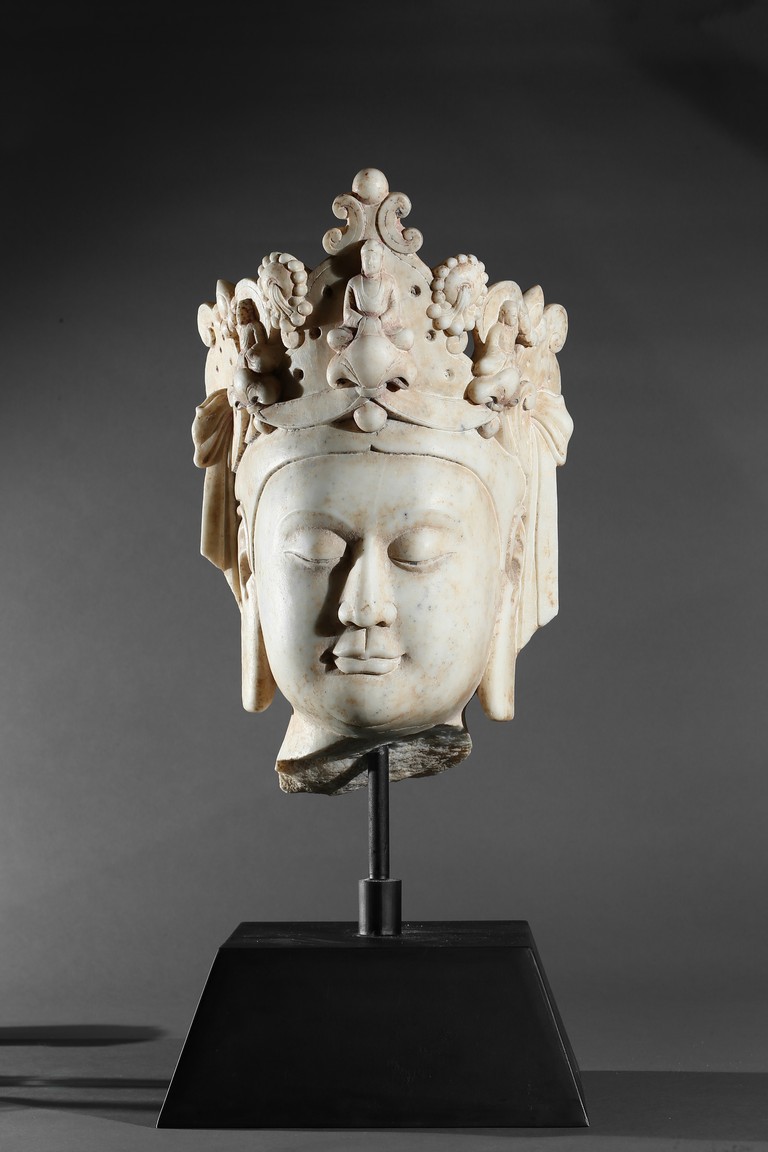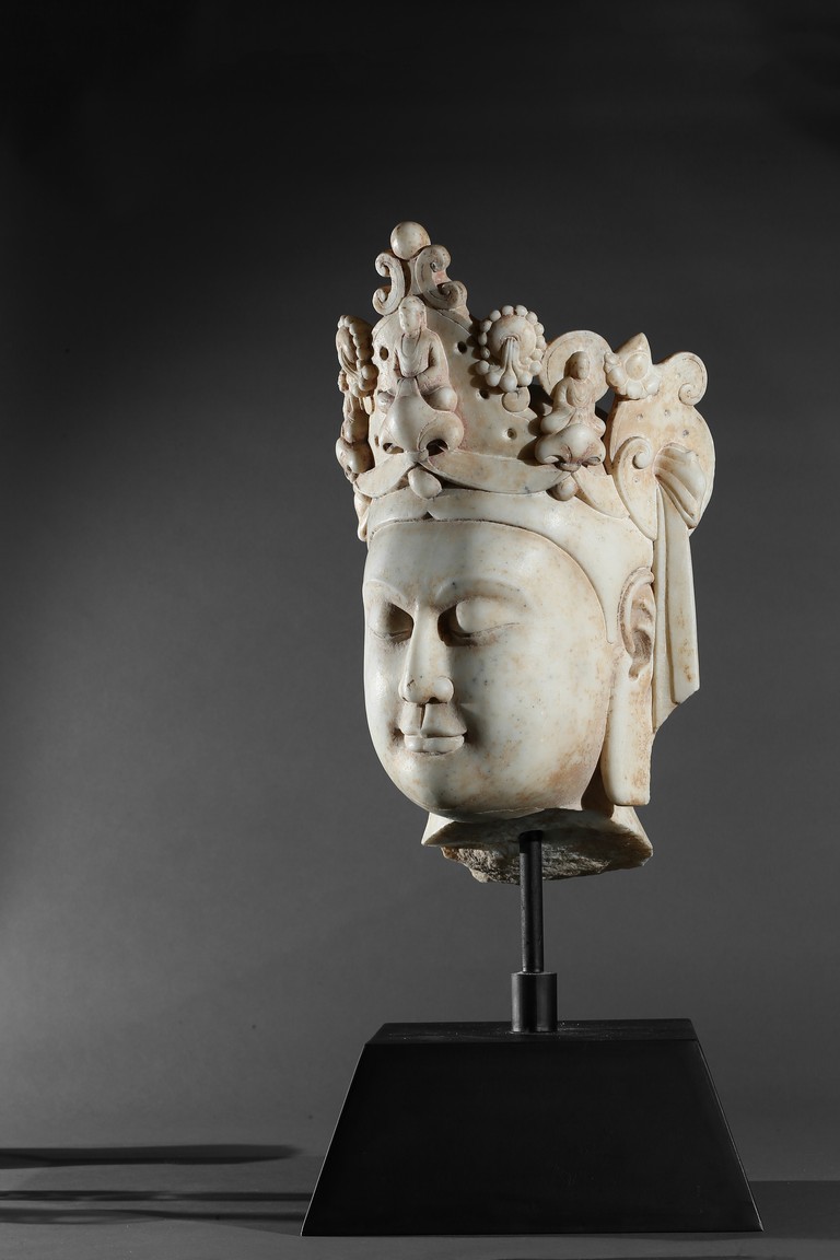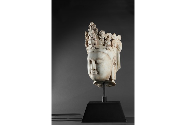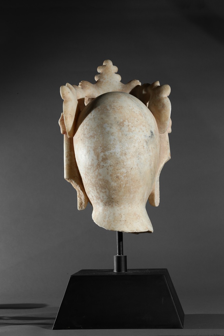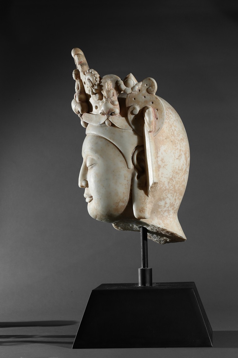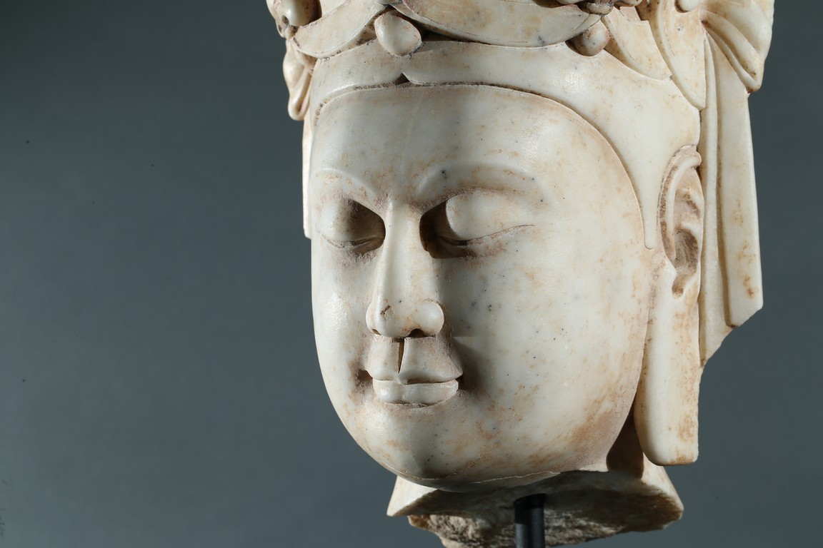 Please refer to a similar marble carved head of bodhisattva, sold in Christie's London October 2, 2003, Lot81. 可參考一類似佛頭,售於倫敦佳士得2003年10月2日,拍品號81。