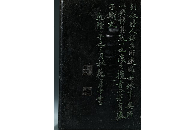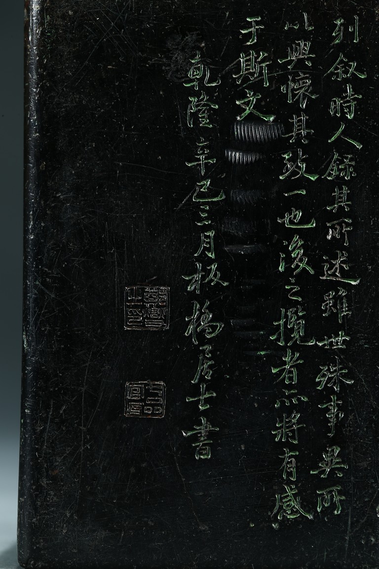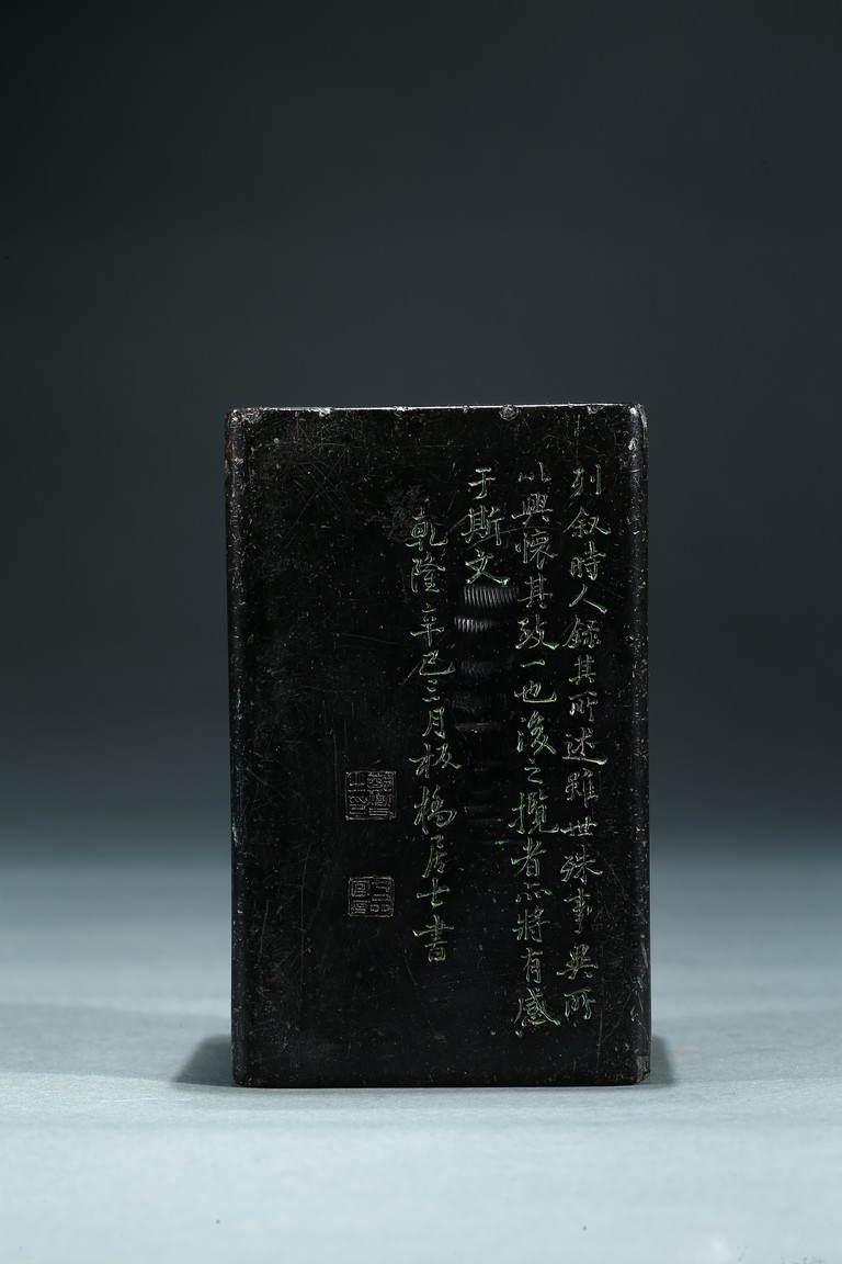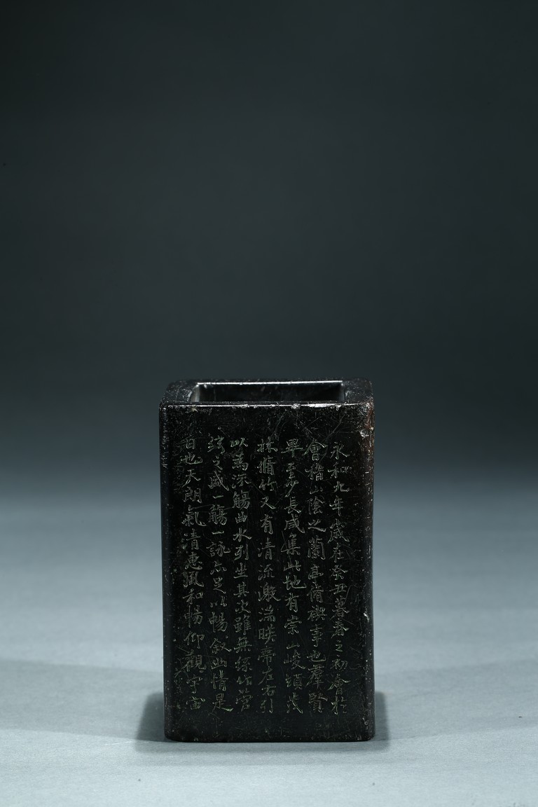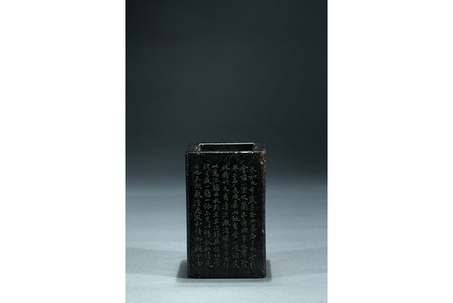 Of square section, the brushpot finely incised with inscriptions bearing the signature Zheng banqiao and two seal marks in running script. Qing Dynasty period.