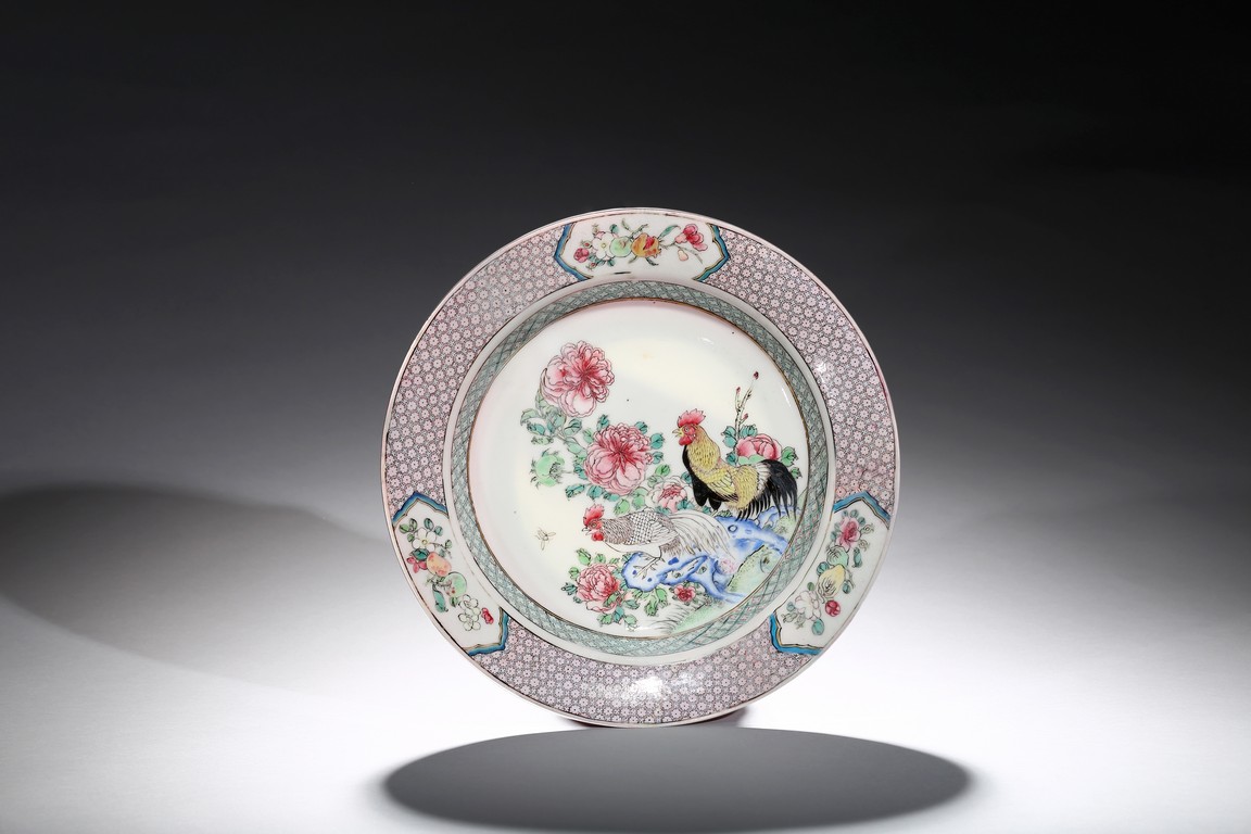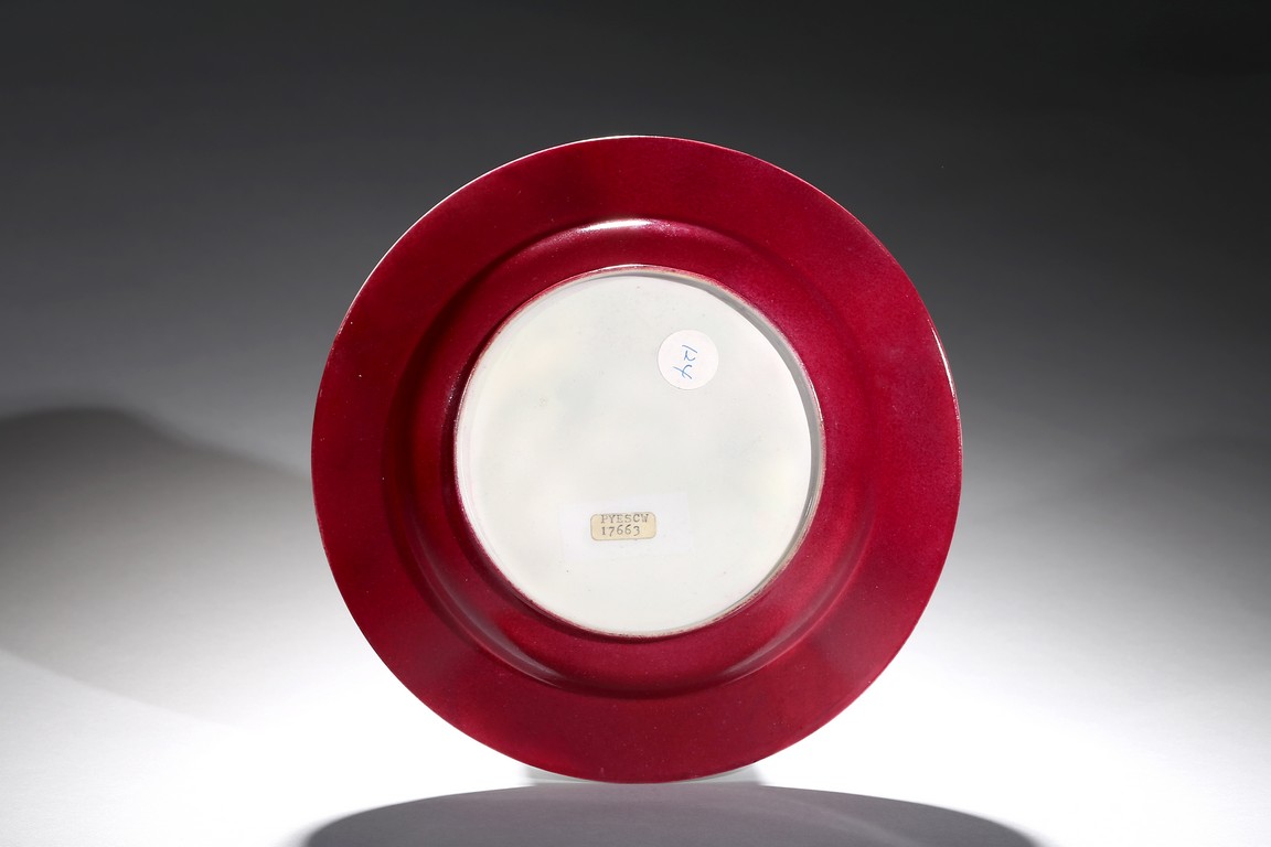 Please refer to a related Yongzheng period famille rose ruby back eggshell dish, illustrated in G. C. Williamson ‘The Book of Famille Rose’, London, 1927, pl. 31. 類似雍正粉彩薄胎胭脂紅盤, 可參考G. C. Williamson所著The Book of Famille Rose一書第31頁 來源:紐約藏家舊藏 1984年購於紐約老牌古董店Rare Art Inc. 附發票