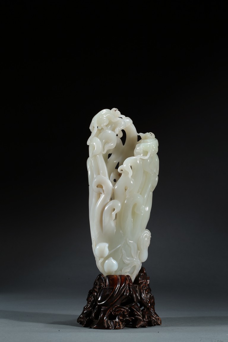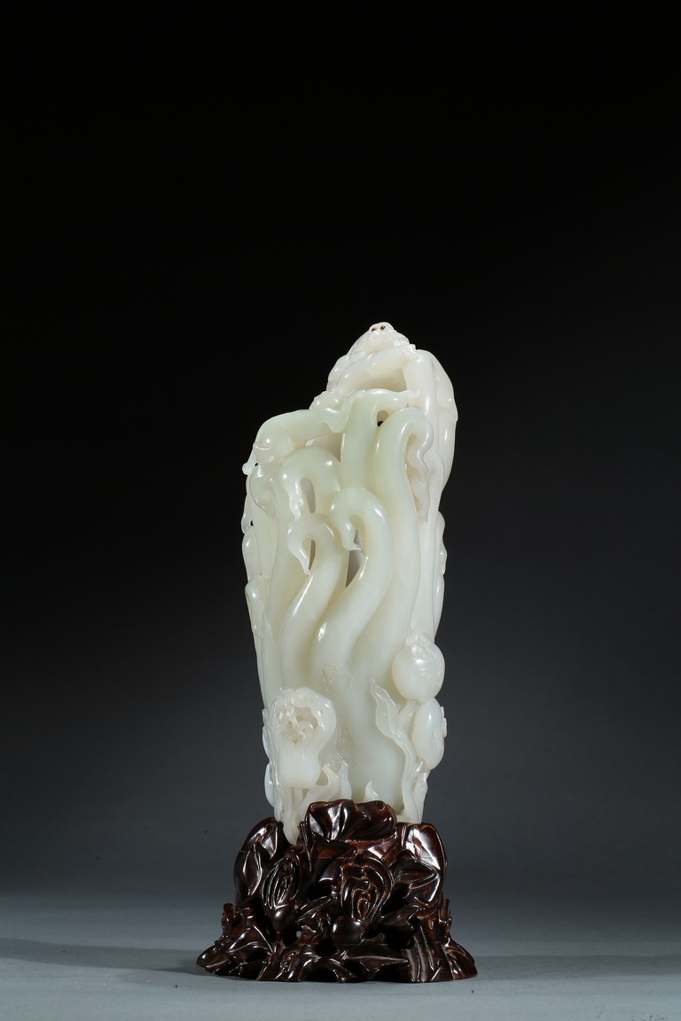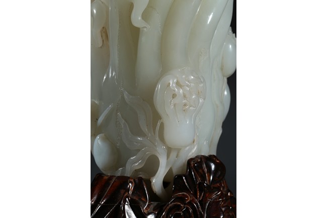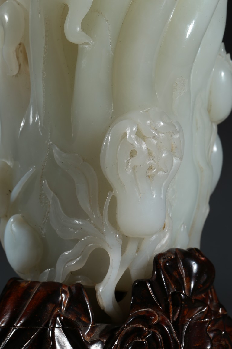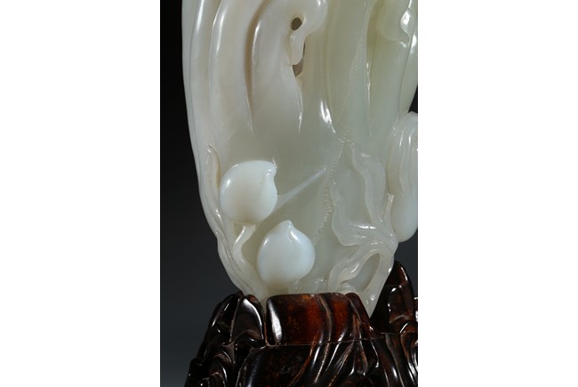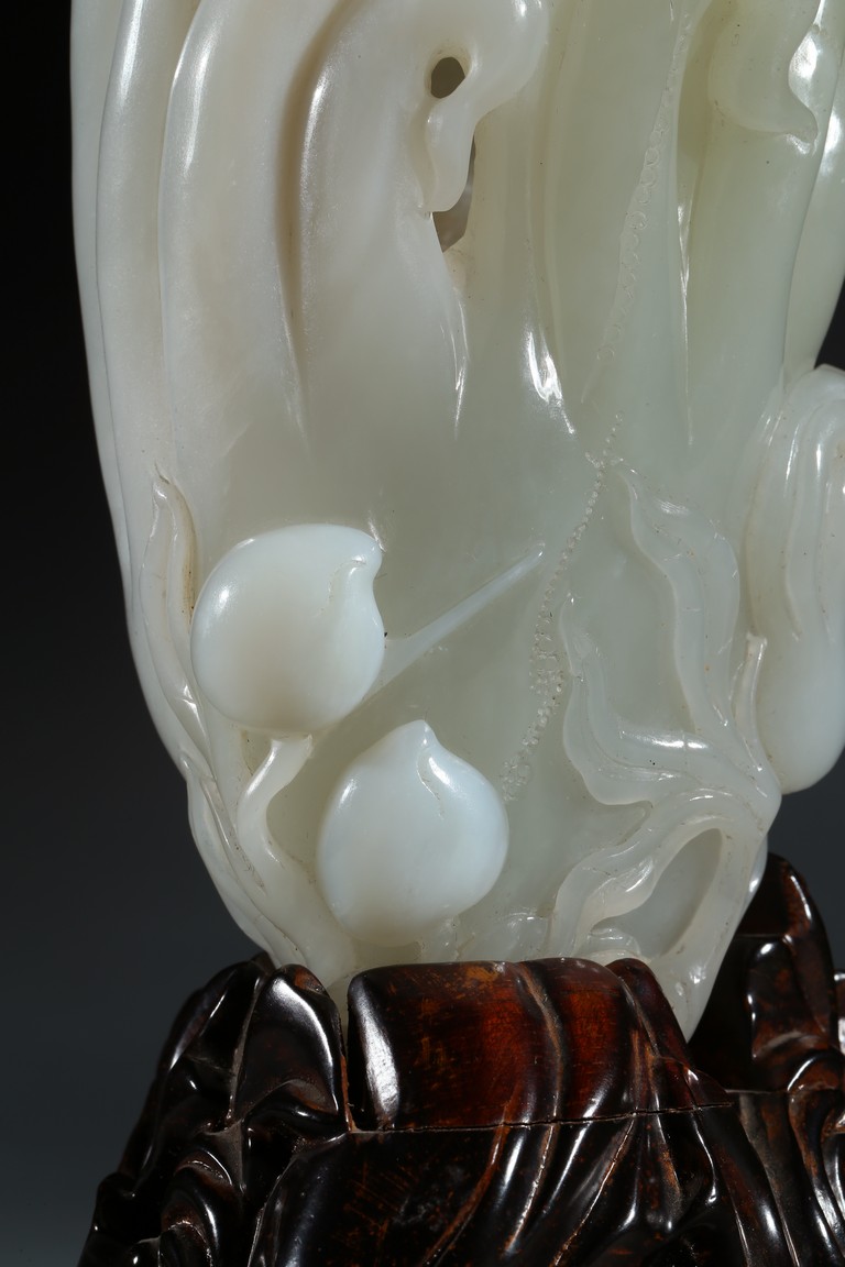 Please refer to a similar white jade carved finger-citron, sold in Christie's New York on March 19, 2008, Lot 451. 可參考一類似白玉雕壽桃佛手,售於紐約佳士得2008年3月19日,拍品號451。